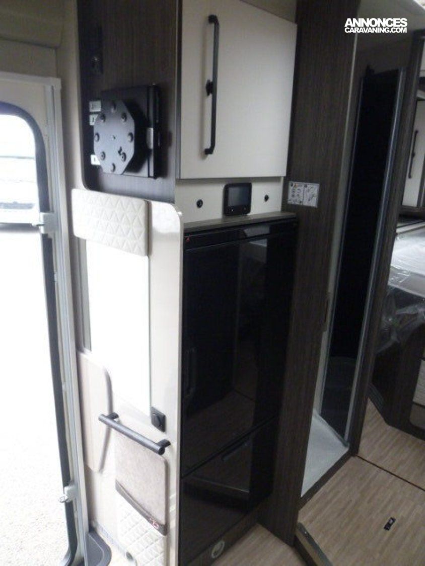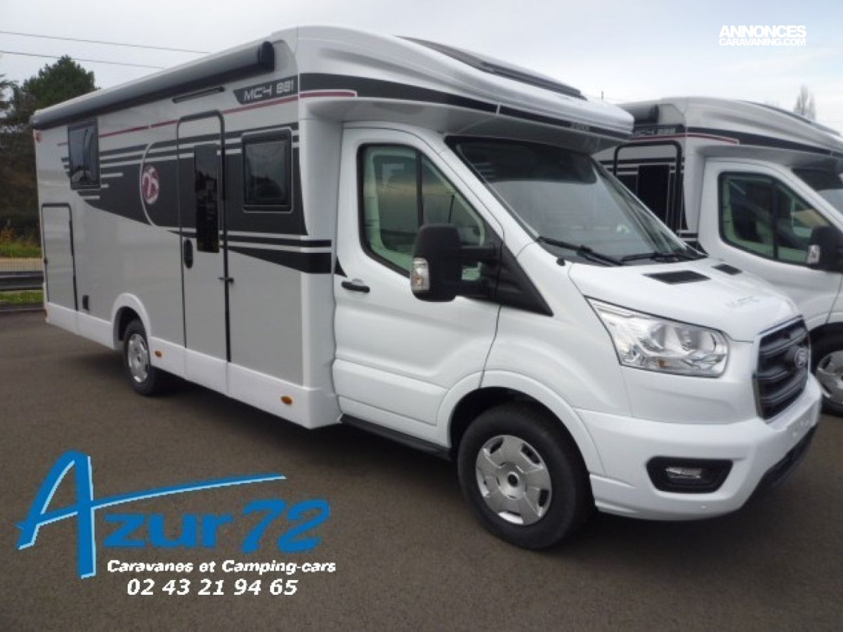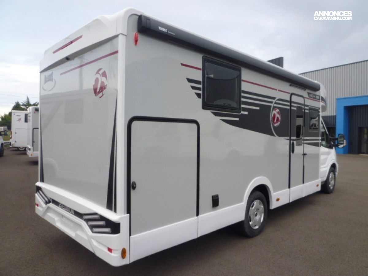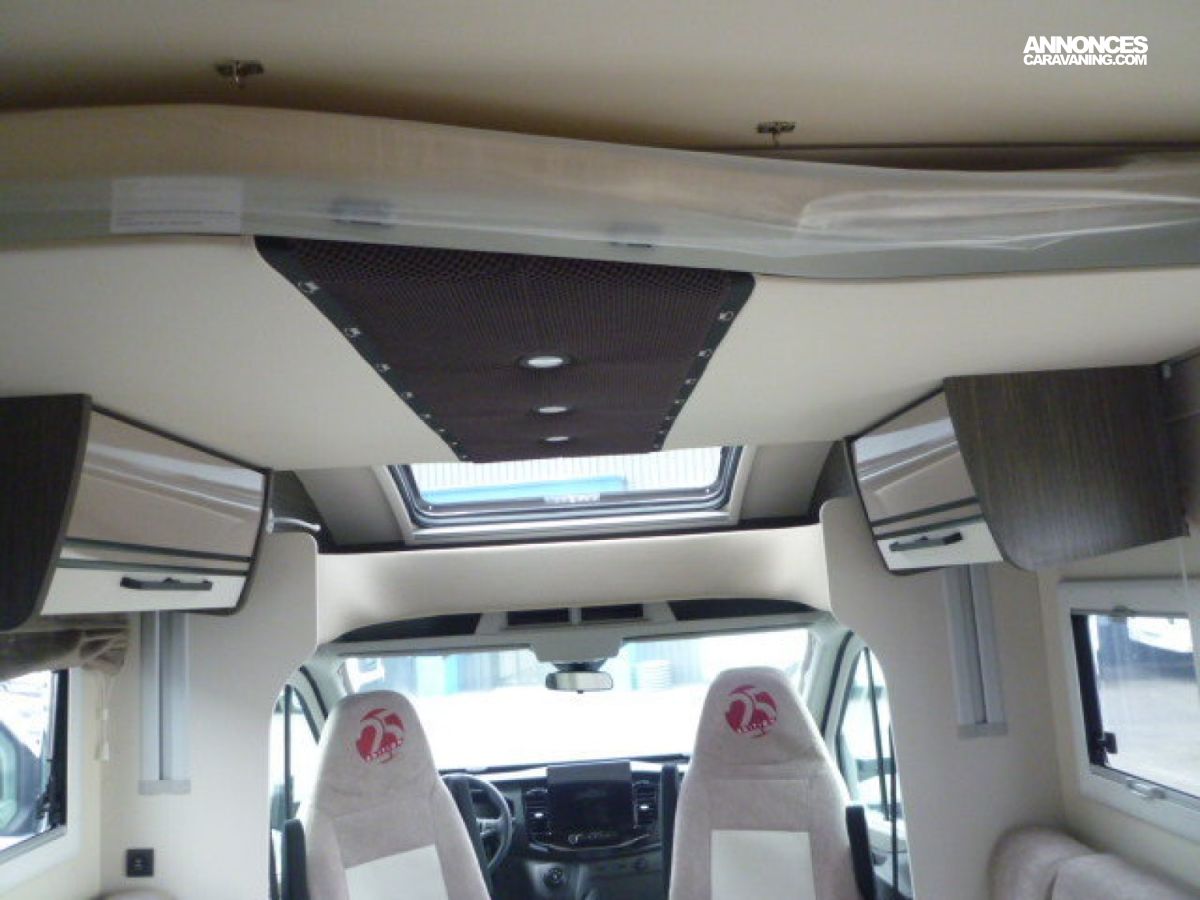 Cuisine en L, Douche indépendante, Lit central, lit pavillon, Salon avant banquettes face à face, Salon avant sièges pivotants, Soute réglable en hauteur, WC Cassette.