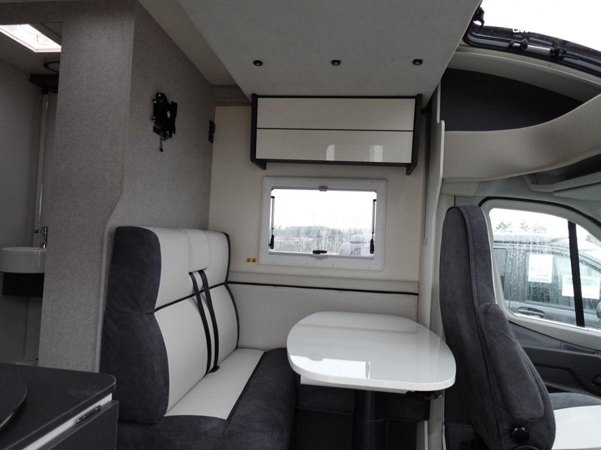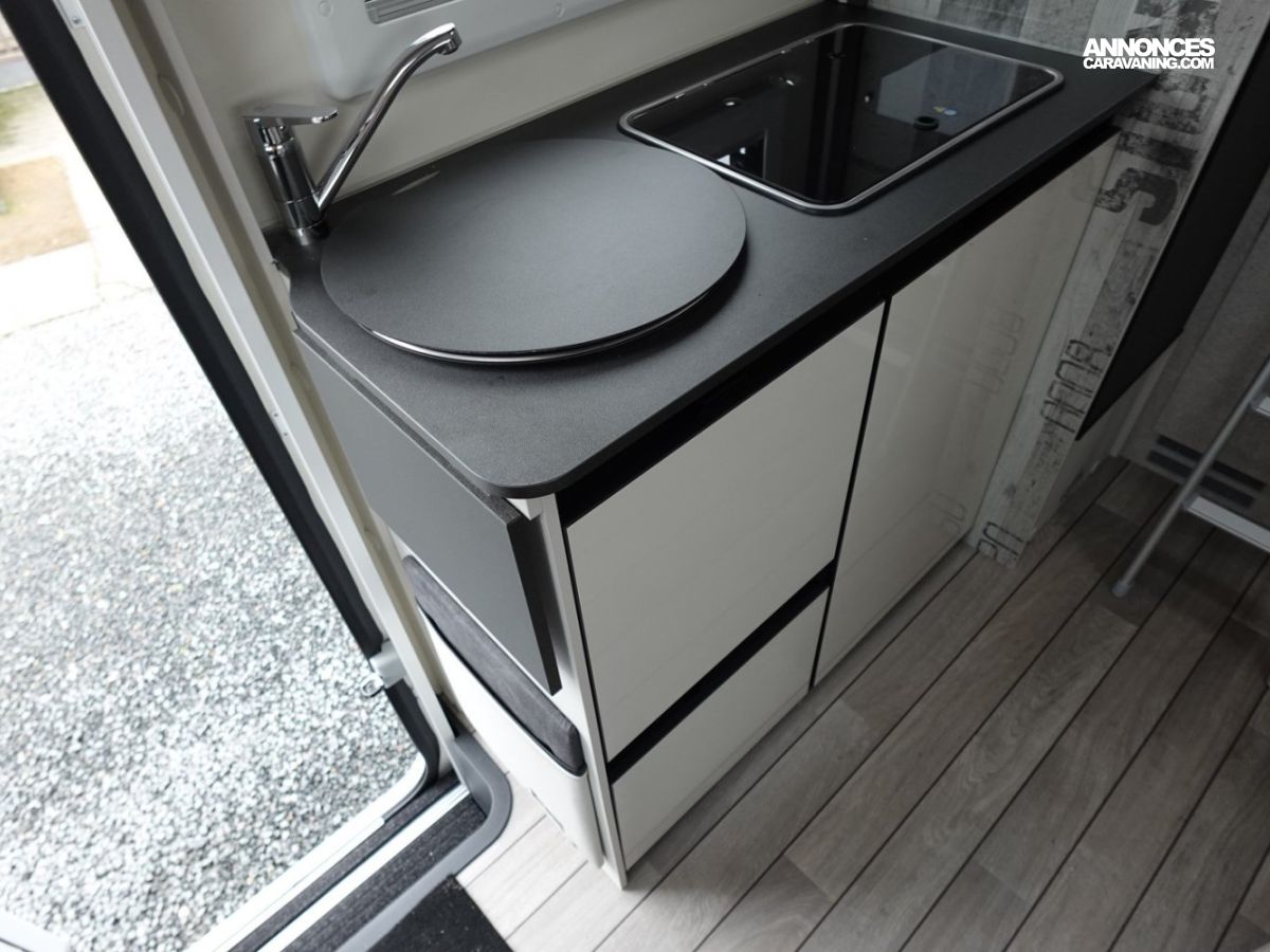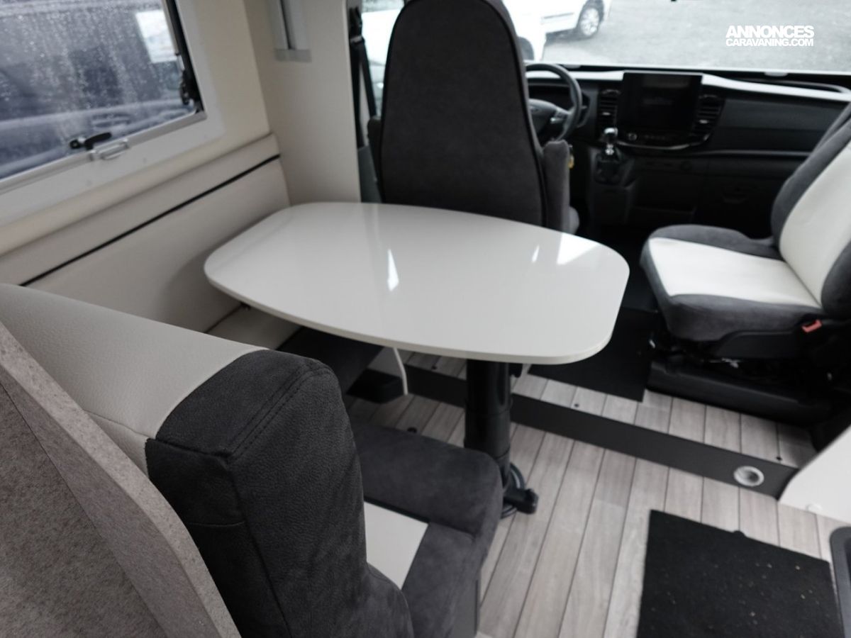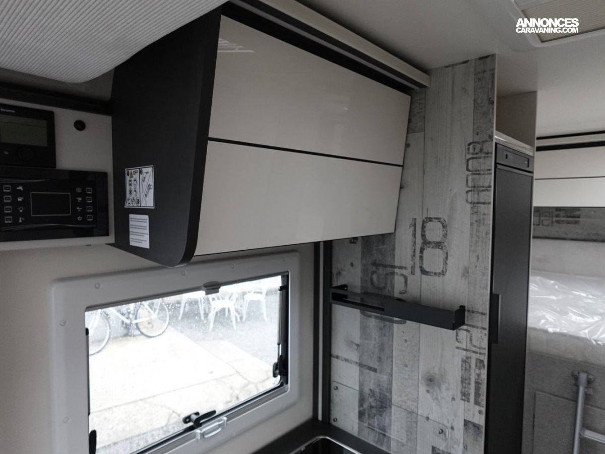(Motorisation 165 CV, Feux High Series adaptatifs, Boite à gants avec serrure, Habillage intérieur et tableau de bord Trend, Pare-chocs et bas de caisse latérales peints couleur carrosserie, Porte XL avec 2 points de fermeture, fenêtre et fermeture centralisée, Panneau solaire 200 W avec régulateur MPPT, Panneau de commande CP Plus, Support TV, Skyroof, Couvercle d’évier, Housses de sièges cabine, Stores occultants plissés de cabine)