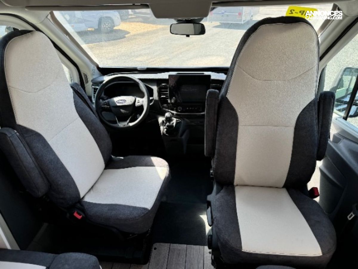 LE PACK SLIM COMPREND:, - MOTEUR EN 165 CV, - SUPPORT TV, - BOITE A GANTS AVEC SERRURE, - PANNEAU SOLAIRE 200W REG MPPT, - HOUSSE DE SIEGES CABINE, - FEUX ADAPTATIFS, - PANNEAU DE COMMANDE CP+, - PARE CHOC COULEUR CARROSSERIE, - PORTE XL AVEC CENTRALISATION, - SKYDOME, - STORES OCCULTANTS AVANT PLISSES, NOUVEL ECRAN TACTIL FORD 12 POUCES, CAMERA DE RECUL, - HABILLAGE FINITION TREND