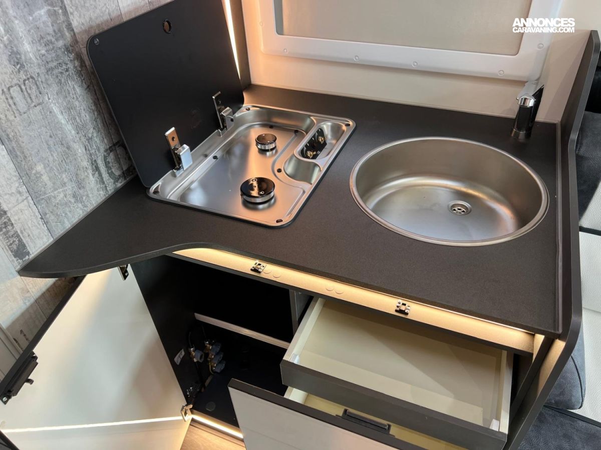 PRISE DE GAZ EXTERNE, DOUCHETTE EXTERIEURE, PACK MATIC :, STORE EXTERIEUR ANTHRACITE, PACK PLEIN AIR :, PLAQUE DE CUISSON 2 FEUX, HAUTEUR MAXIMALE INTERIEUR DE SOUTE 219 CM, PACK SERIE 300 SLIM :, HOUSSES DE SIEGE CABINE, REFRIGERATEUR TRIMIXTE AUTOMATIQUE 137 L, CHAUFFAGE / CHAUFFE EAU TRUMA COMBI GAS 4 KW, MOTORISATION 165 CV, PANNEAU SOLAIRE 200 W AVEC REGULATEUR MPPT, SUPPORT TV, SKYROOF, BOITE AUTOMATIQUE 8 VITESSES