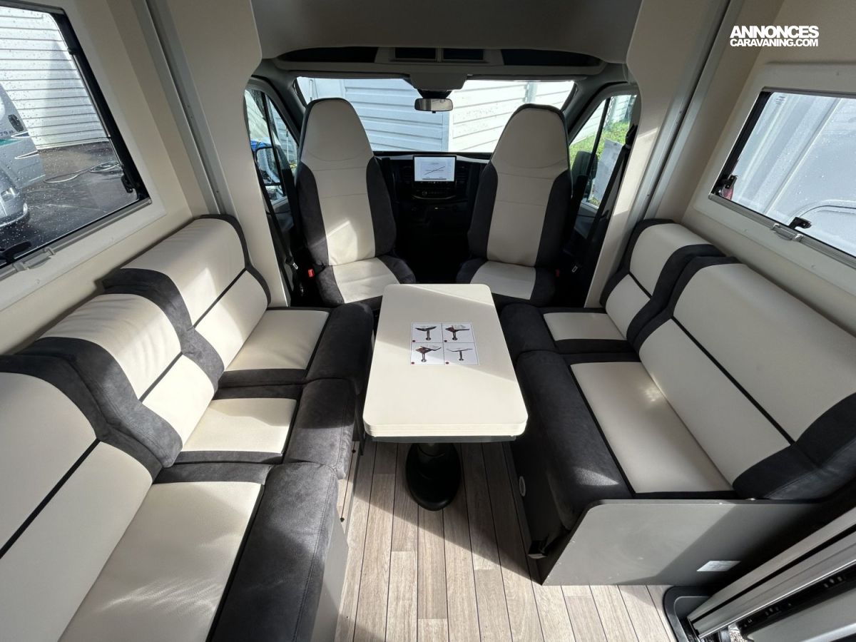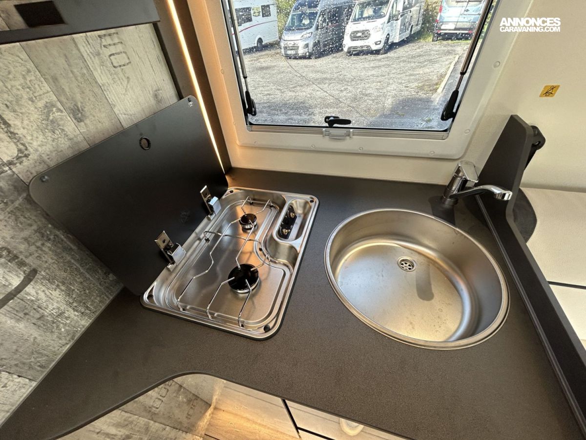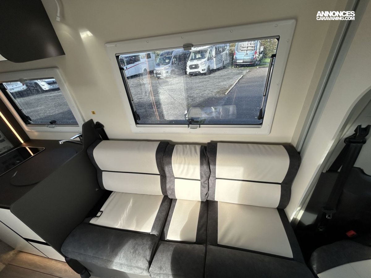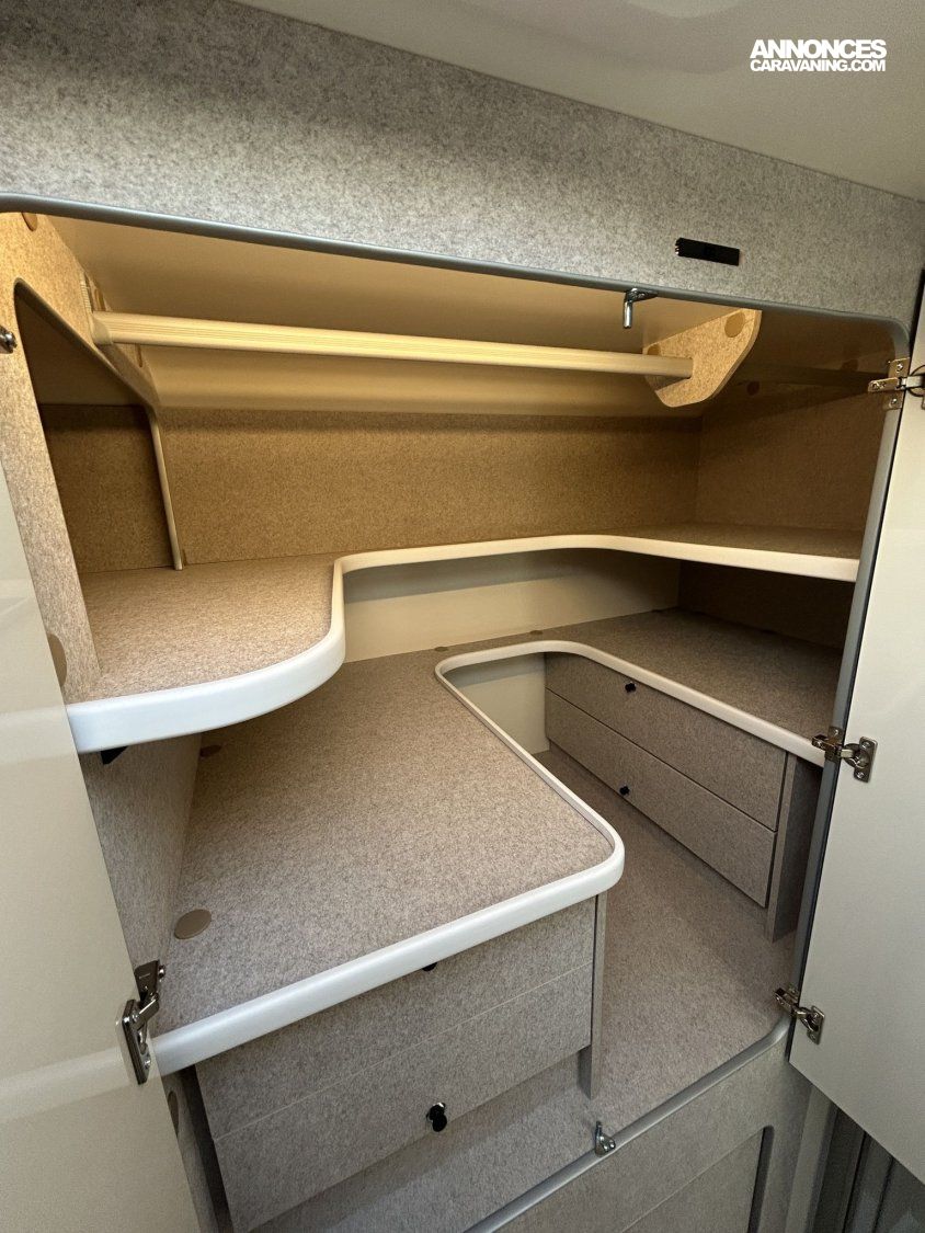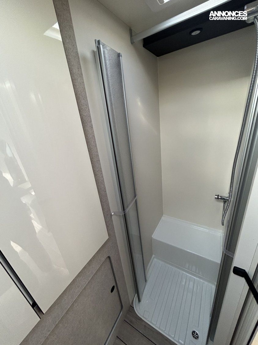 Sièges cabine pivotants ; Isofix ; Table pliante rotative à 360° ; Éclairage à LED ; Espace pour TV 32’’ ; Sièges confort en position route ; Plaque de cuisson à deux feux ; Prise 220 V dans la cuisine ; Douche intégrée avec porte rigides ; Sommiers des lits à lattes ; Spots lumineux avec prises USB dans la zone nuit