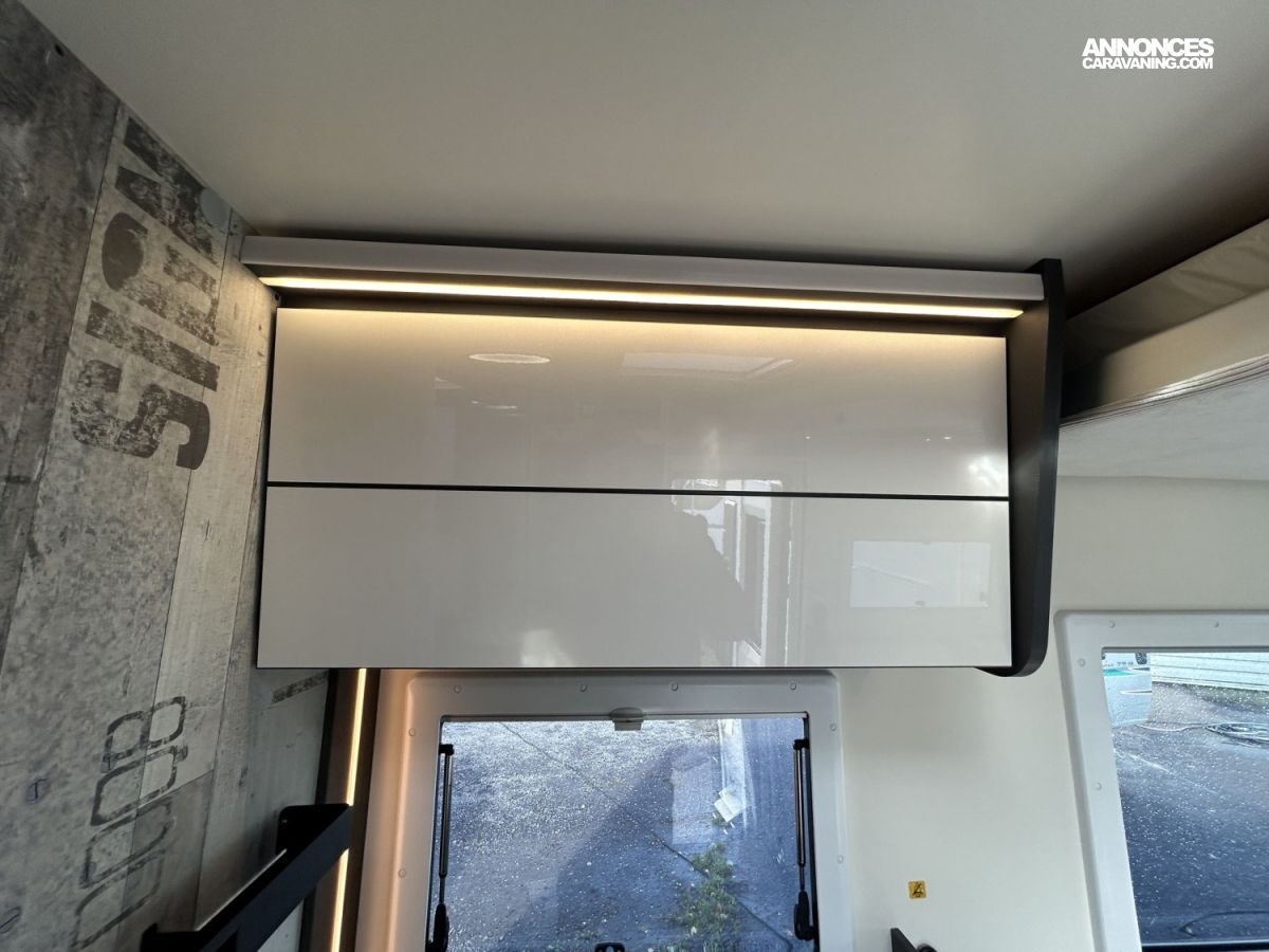 Motorisation 165 CV ; Feux « High Séries » adaptatifs ; Boîte à gants avec serrure ; Habillages et tableau de bord «Trend» ; Parechocs et bas de caisse latérales peints couleur de la carrosserie ; Porte XL à 2 points avec fenêtre et fermeture centralisée; Panneau de contrôle CP Plus ; Skyroof ; Couvercle d’éviers ; Support TV ; Housses de siège coordonnées avec les tissus ; Panneau solaire 200 W avec régulateur MPPT ; Stores occultants plissées cabine