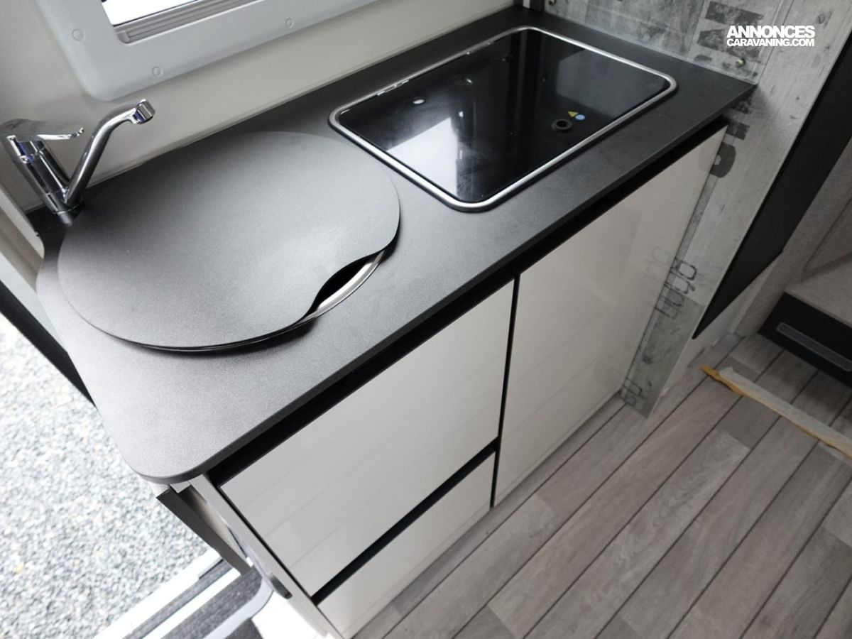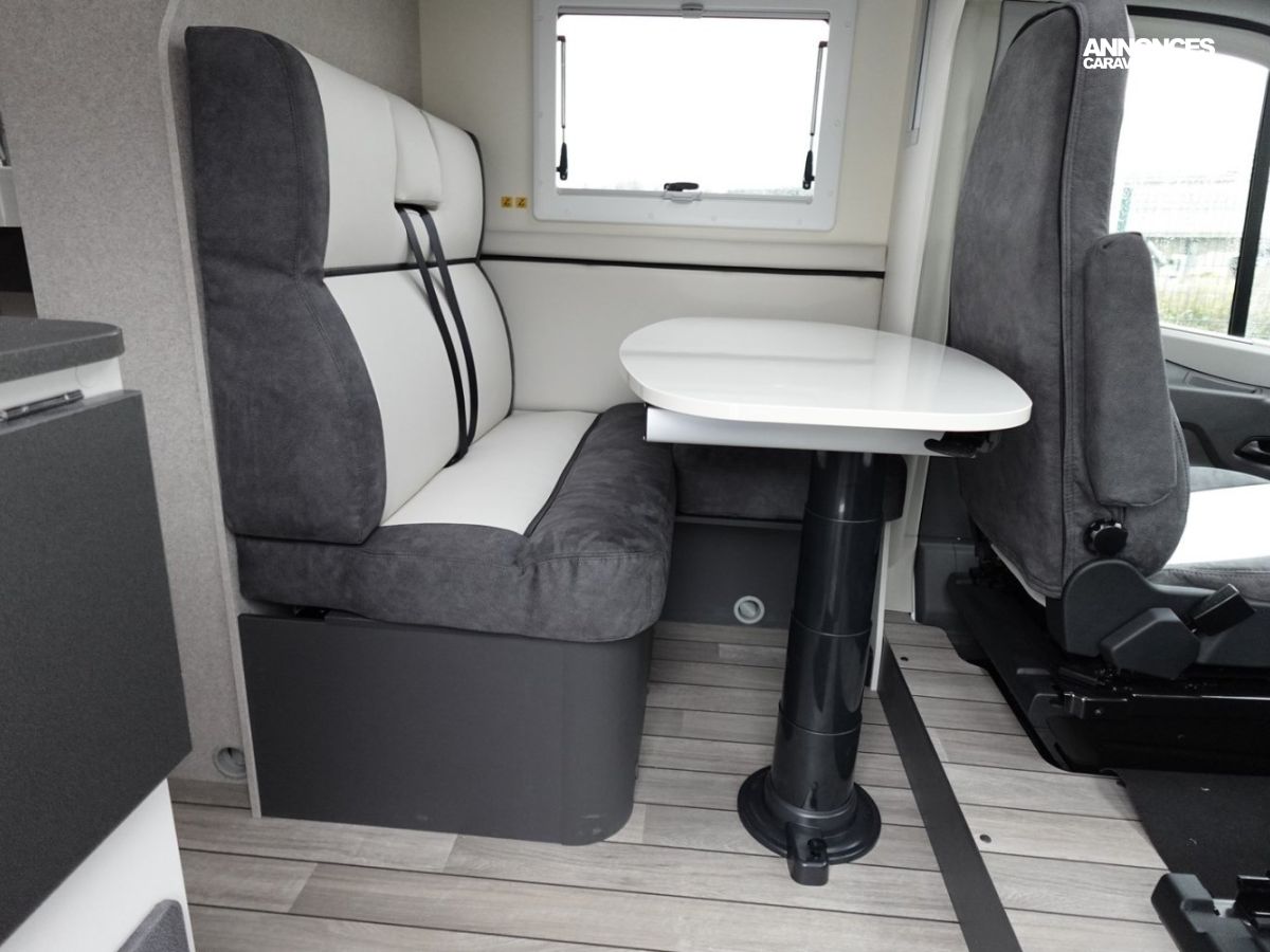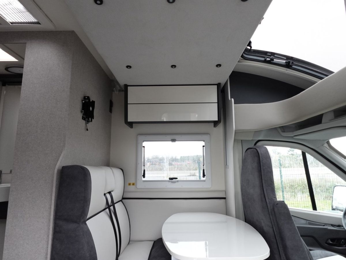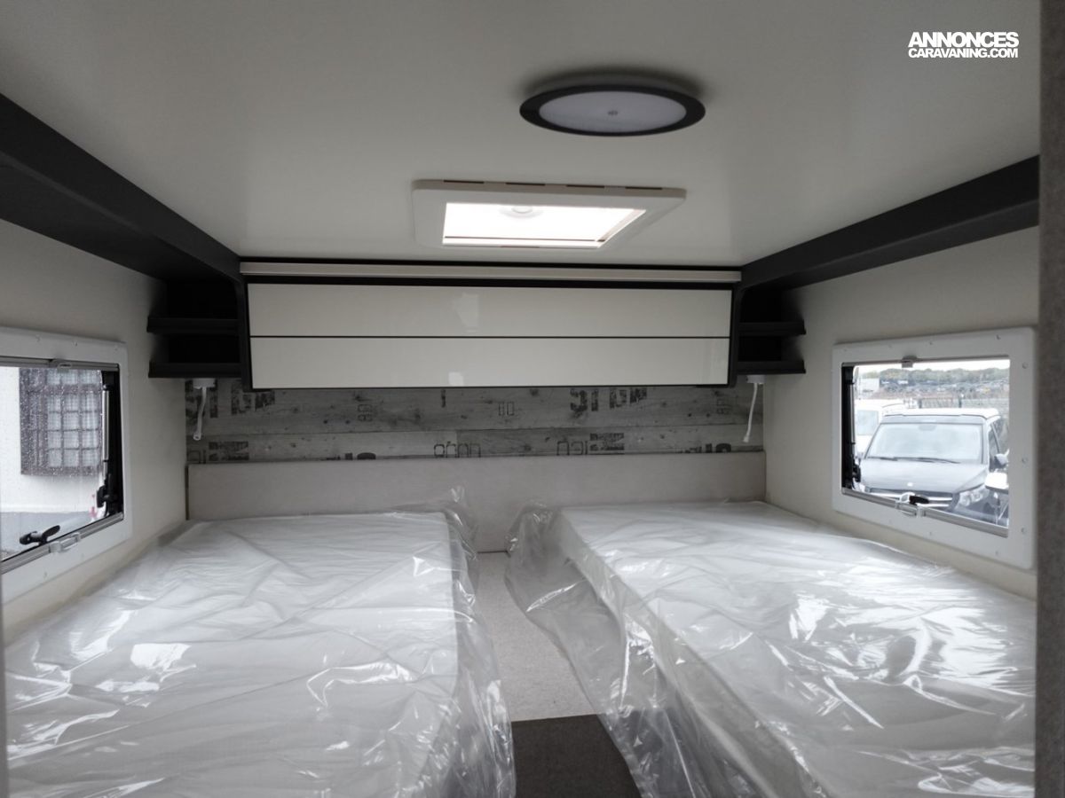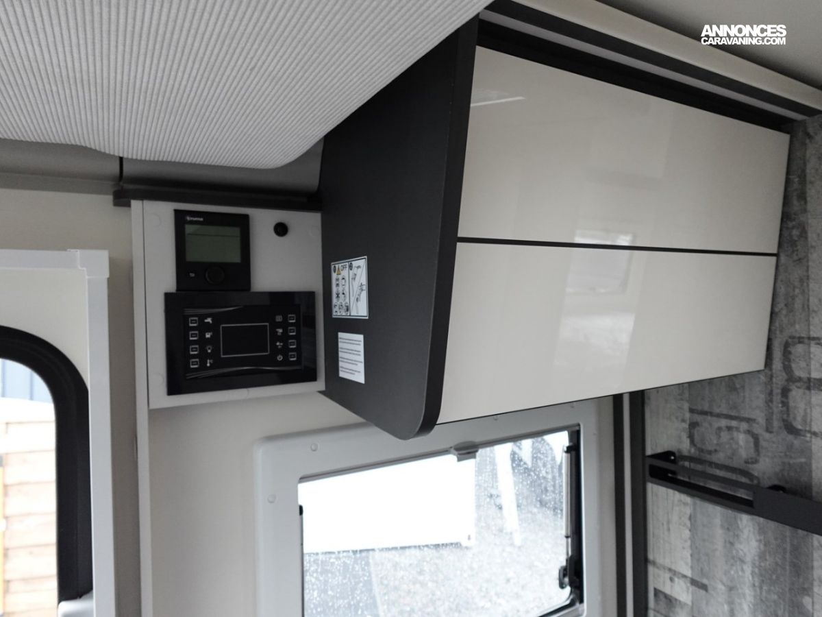 (Motorisation 165 CV, Feux High Series adaptatifs, Boite à gants avec serrure, Habillage intérieur et tableau de bord Trend, Pare-chocs et bas de caisse latérales peints couleur carrosserie, Porte XL avec 2 points de fermeture, fenêtre et fermeture centralisée, Panneau solaire 200 W avec régulateur MPPT, Panneau de commande CP Plus, Support TV, Skyroof, Couvercle d’évier, Housses de sièges cabine, Stores occultants plissés de cabine)