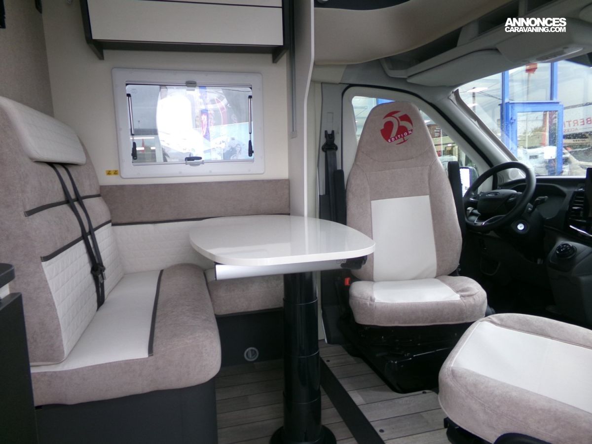 STORE EXTERIEUR ANTHRACITE 3.5M, DOUCHETTE EXTERIEURE, ISOFIX, REFRIGERATEUR TRIMIXTE AUTO 137L - 1PORTE, PRISE DE GAZ EXTERNE, JANTES ACIER 16", RESERVOIR DIESEL 70L, FEUX ANTI-BROUILLARD, FREIN A MAIN ELECTRIQUE, CAMERA DE RECUL, CLIM AUTOMATIQUE, SUPPORT TV, STORE PLISSES D OCCULTATION CABINE