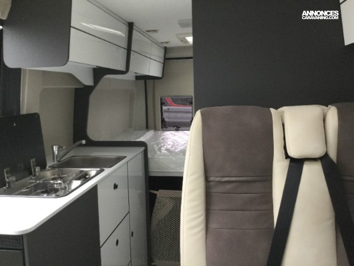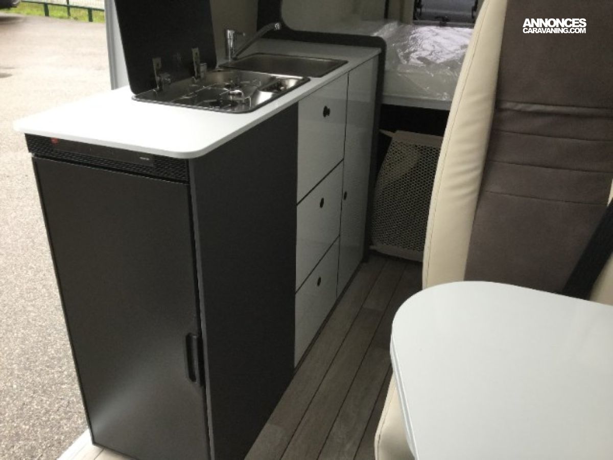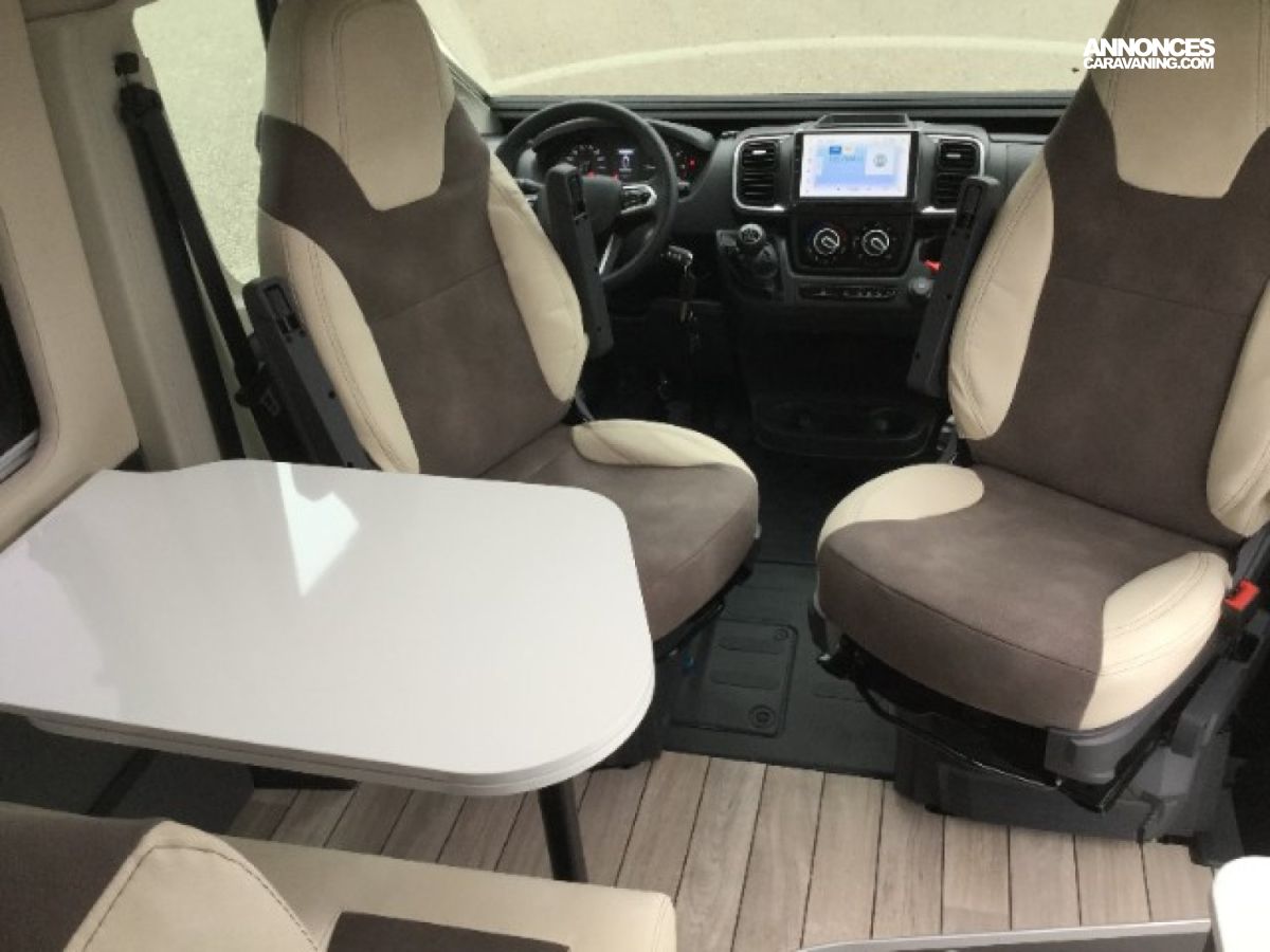 Caméra de recul, Chauffage Truma 4 diesel avec commande CP plus, Commandes radio au volant, Feux anti-brouillard, Frein a main électrique, Jantes alliage 16", Lumière extérieur, Marche pied électrique, Moustiquaire porte coulissante, Panneau solaire 200w, Pare choc avant peint, Pneus 4 saisons, Poste multimédia 9" Pioneer, Réfrigérateur a compression 84l, Réservoir carburant 90 l, Store plissé occultant cabine, Traction +, Volant cuir