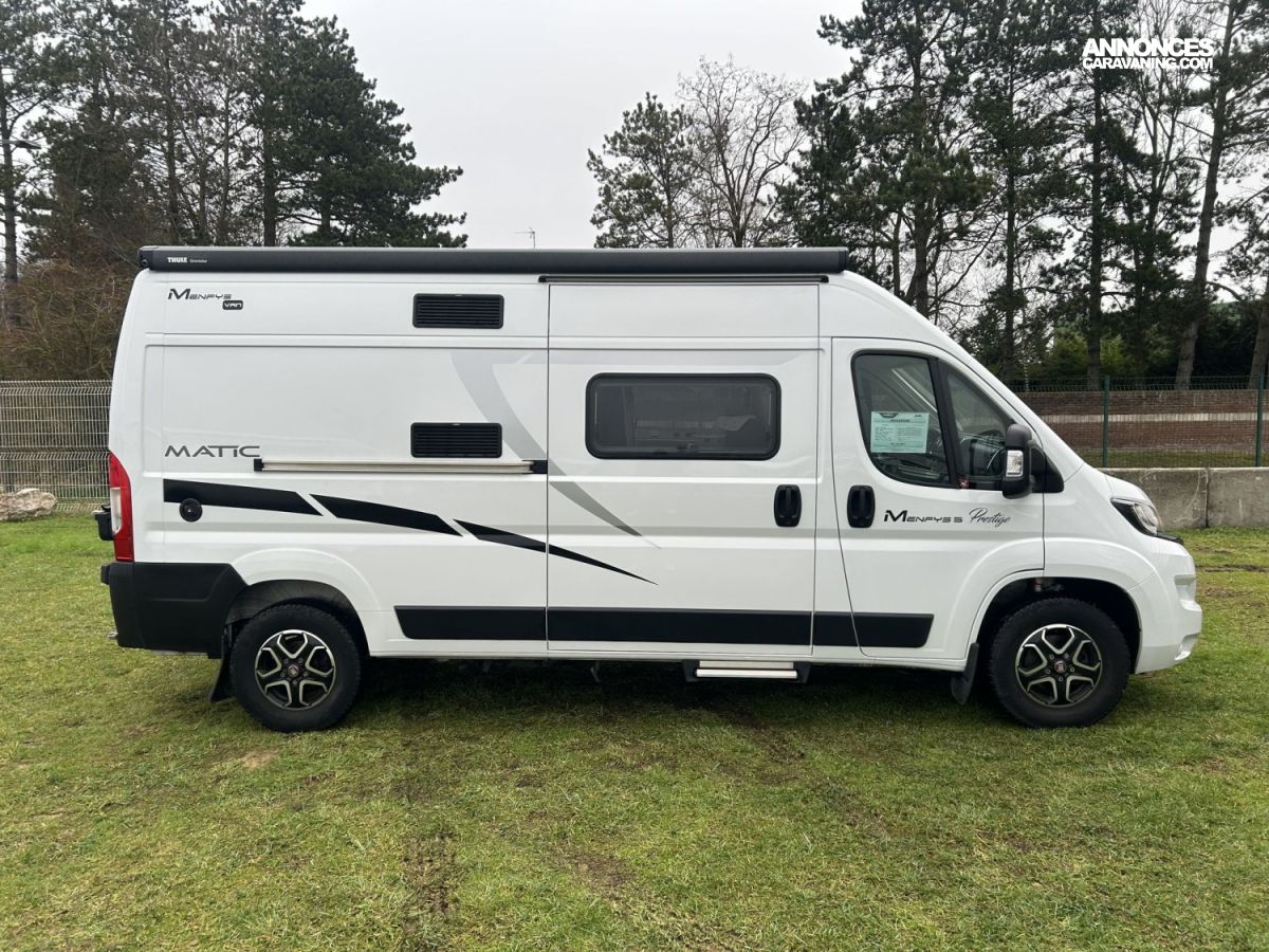 🚐 MC LOUIS MENFYS VAN 3 PRESTIGE – BOÎTE AUTOMATIQUE – FULL OPTIONS – 5,99 mÀ vendre fourgon aménagé MC LOUIS Menfys Van 3 Prestige, année 05/2023, sur base Fiat Ducato 2.2L 140 ch, en excellent état, soigneusement entretenu.Un fourgon compact, puissant et ultra confortable, idéal aussi bien pour les escapades que pour les longs voyages en toute autonomie.