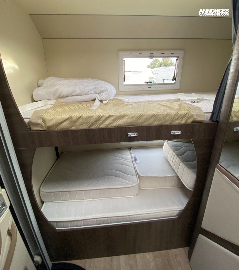 SON LIT SUPPERPOSE ARRIERE SE RELEVE AFIN D'OBTENIR UNE SOUTE GARAGE