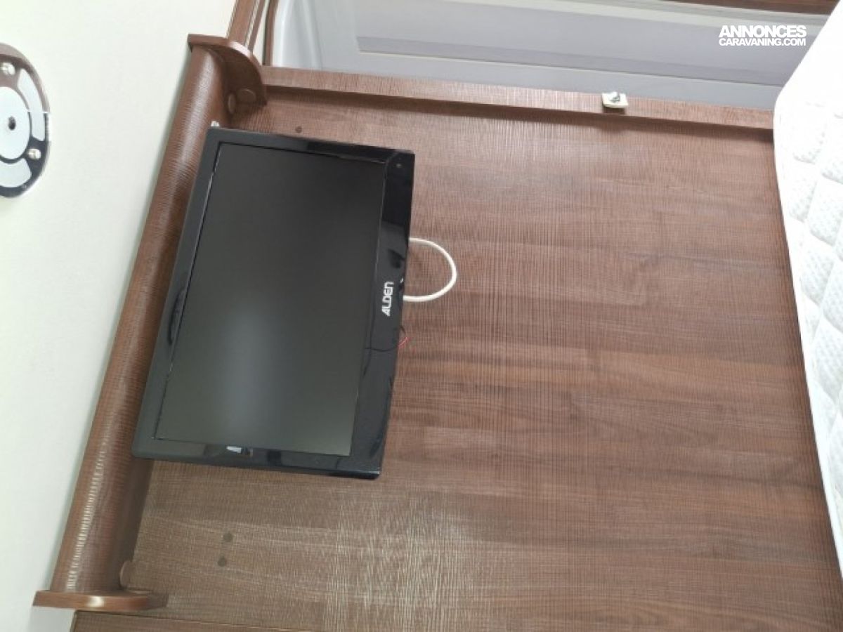 Salle de bains centrale, Porte vélo 2 Vélos, Caméra de recul, Store extérieur, 2 Télévisions, Antenne Satellite automatique ALDEN, Autoradio Double DIN, Rafraichisseur de toit, Panneau solaire, Traction + / Hill descent, Lit réglable en hauteur