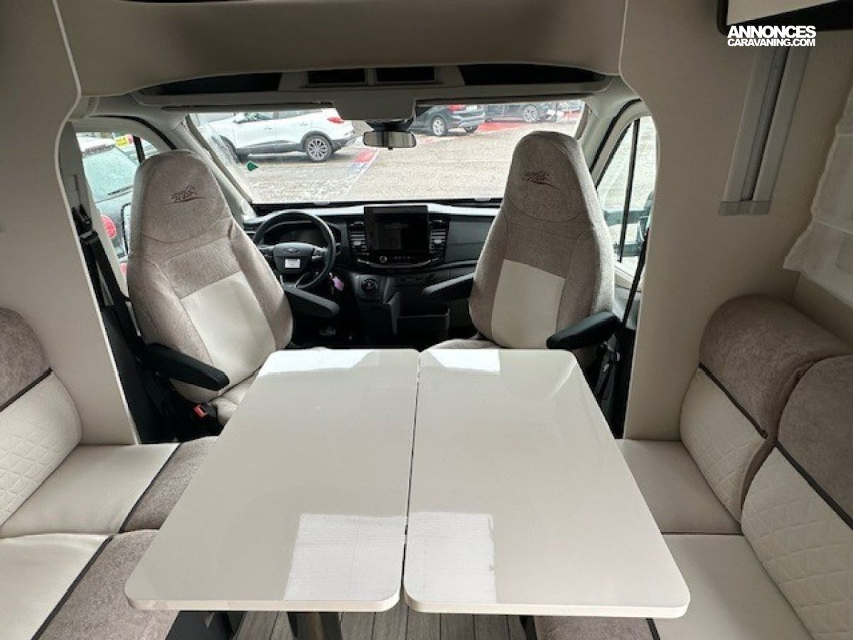 AIDE AU MAINTIEN DANS LA VOIE, ALERTE DE CONDUITE A CONTRESENS, ASSISTANCE PRE COLLISION, BOITE A GANTS AVEC SERRURE, CAMERA DE RECUL FORD CONNECTE A L ECRAN TACTILE 12", CHAUFFAGE GAZ COMBI 4, CLIM AUTO CABINE, DEGIVRAGE ELEC DU PARE BRISE, ISOFIX, JANTE ALLIAGE NOIR 16", LIT ARRIERE REGLABLE ELECTRIQUEMENT, PANNEAU SOLAIRE 200W AVEC REGULATEUR MPPT, PEINTURE METALLISEE MOODUST SILVER, PRISE 220V DANS LA CUISINE, PRISE 220V DANS LE GARAGE, PRISE DE GAZ EXTERNE ET DOUCHETTE DANS LA SOUTE, REFRIGERATEUR 137L, RESERVOIR GO 70L, SPOT A LEDS AVEC PRISE USB, STORE EXTERIEUR ANTHRACITE 4,5M, STORE PLISSE D OCCULTATION CABINE