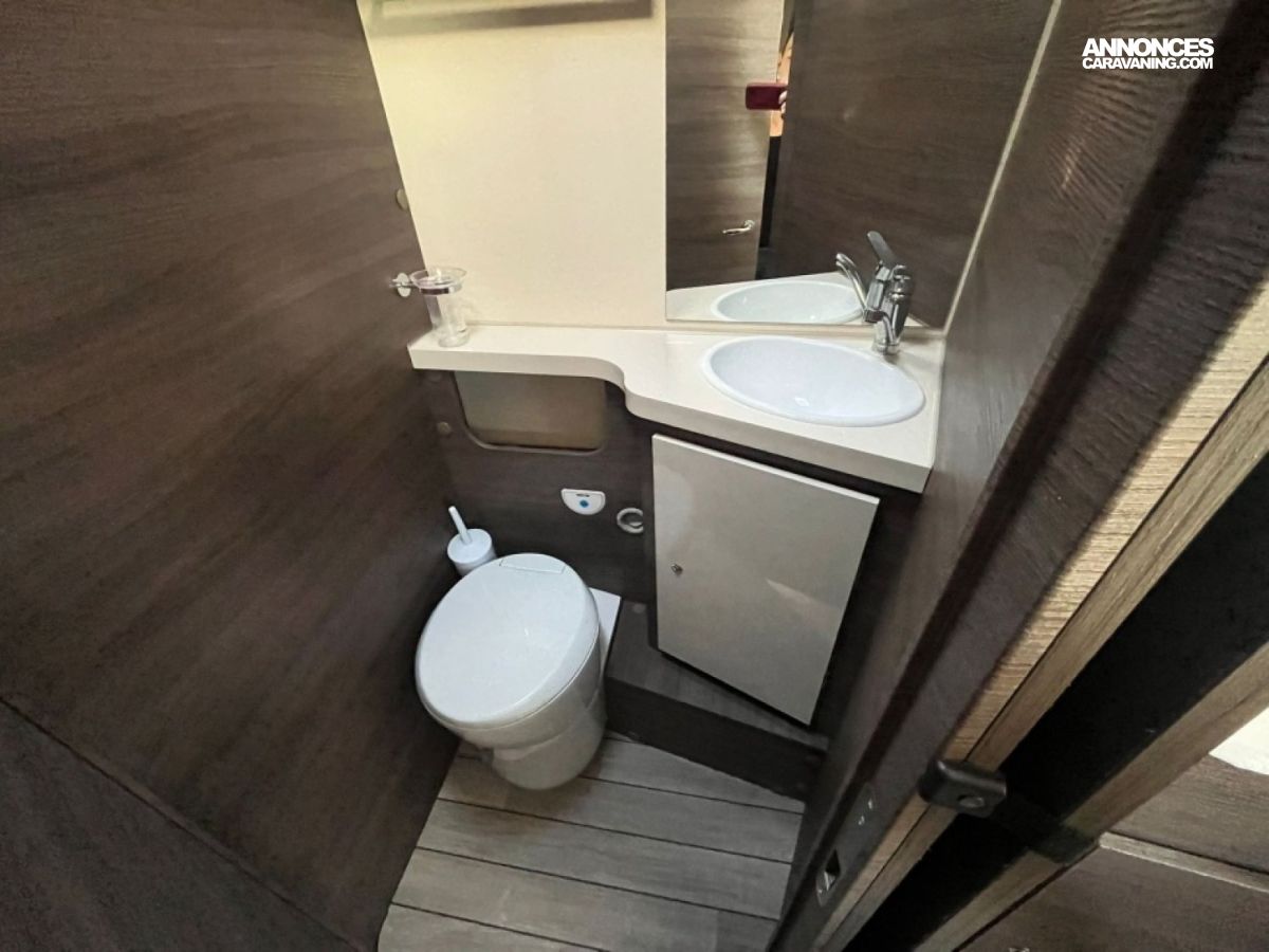 Accessoires : TV, chauffage au gaz, douche et toilettes séparées, cloison jour-nuit, grand frigo congélateur, grande soute à l’arrière