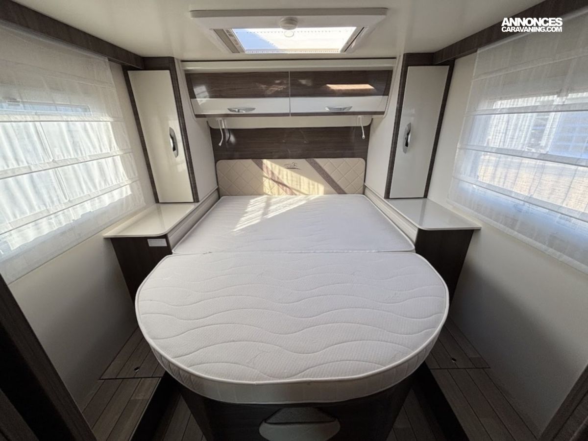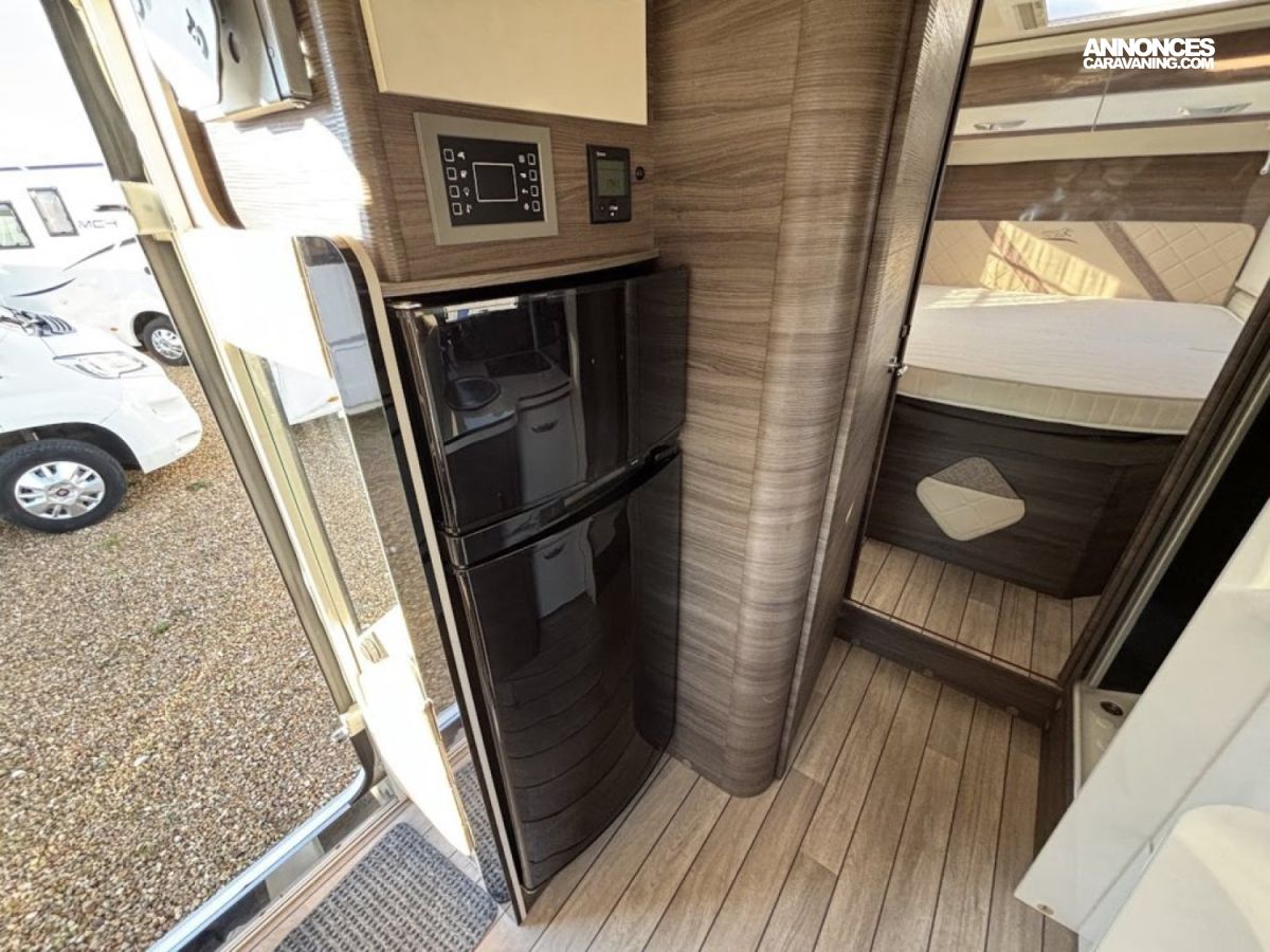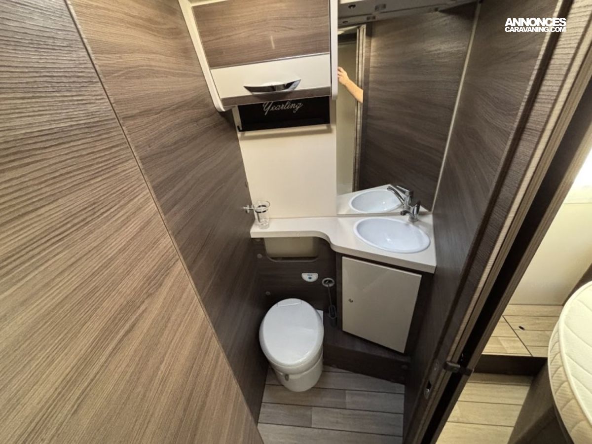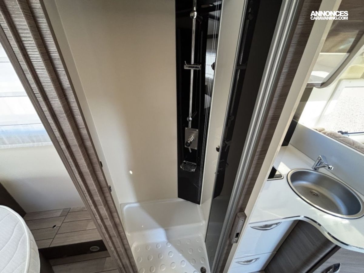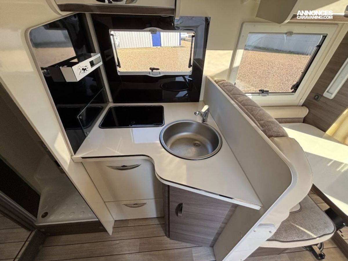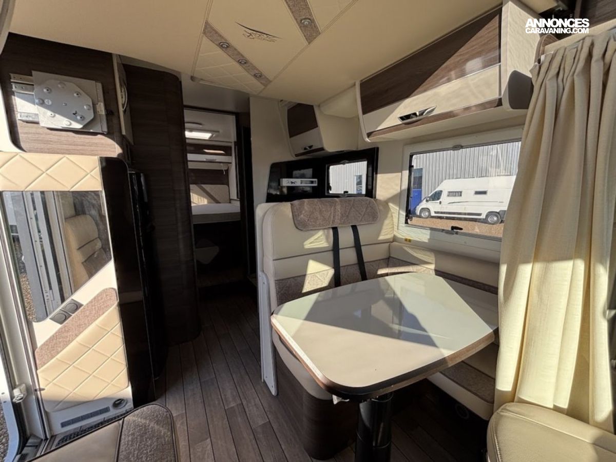 Cuisine en L, Grande soute, Lit central, Lit dînette avant, lit pavillon, Salon avant sièges pivotants, Salon en L, Soute réglable en hauteur, WC Cassette.