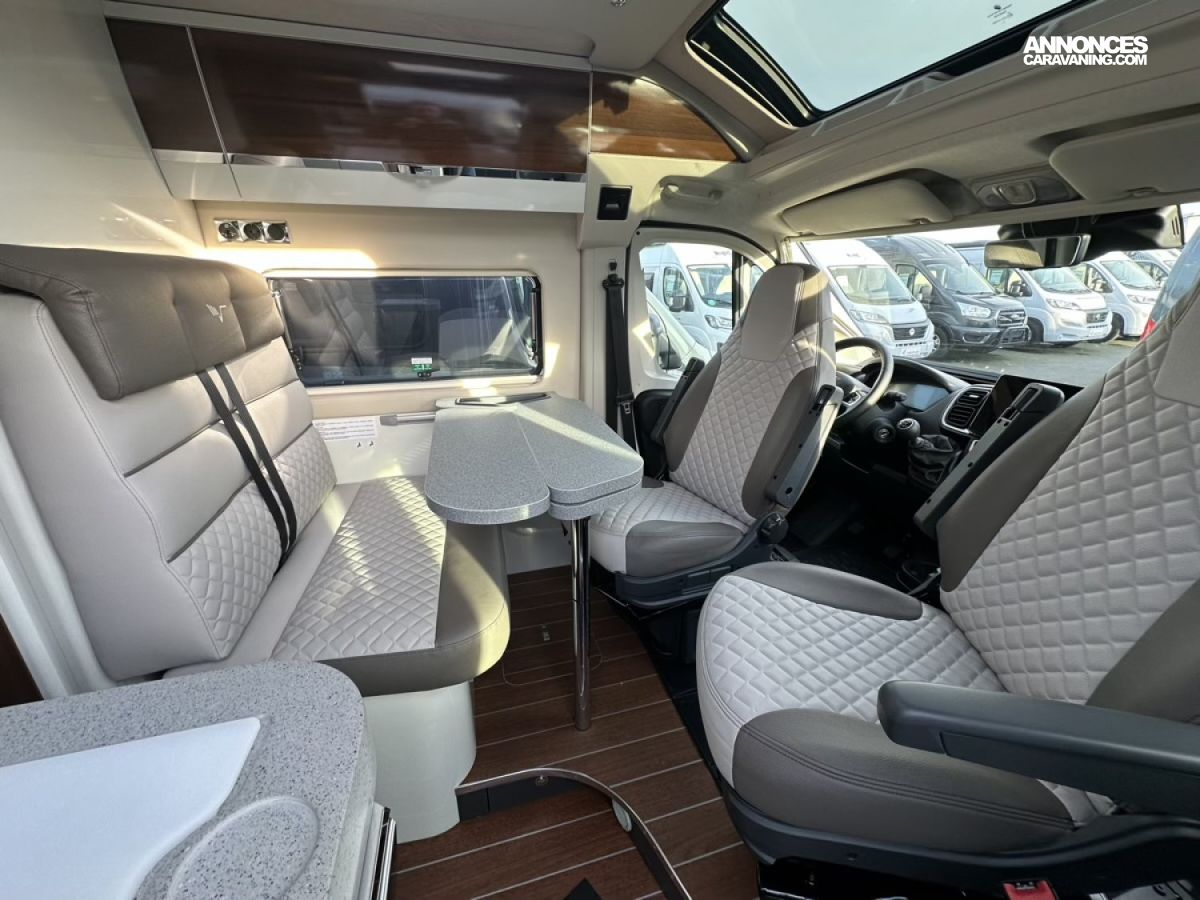 TABLE PLIANTE AVEC EXTENSION, COMBI DIESEL 4 KW – CP PLUS, REGULATEUR + LIMITATEUR DE VITESSE, VOLANT ET POMMEAU EN CUIR, STORE PLISSE CABINE ARRIERE, SKID PLATE + CALANDRE + FEUX NOIRS, FRIGO A COMPRESSION : 84 L, COMMANDES AU VOLANT, RADIO PIONEER 9 BLUETOOTH APPLE CARPLAY ANDROID AUTO, TABLEAU DE BORD TECHNO, MARCHE PIED ELECTRIQUE, CAILLEBOTIS DE DOUCHE EN BOIS