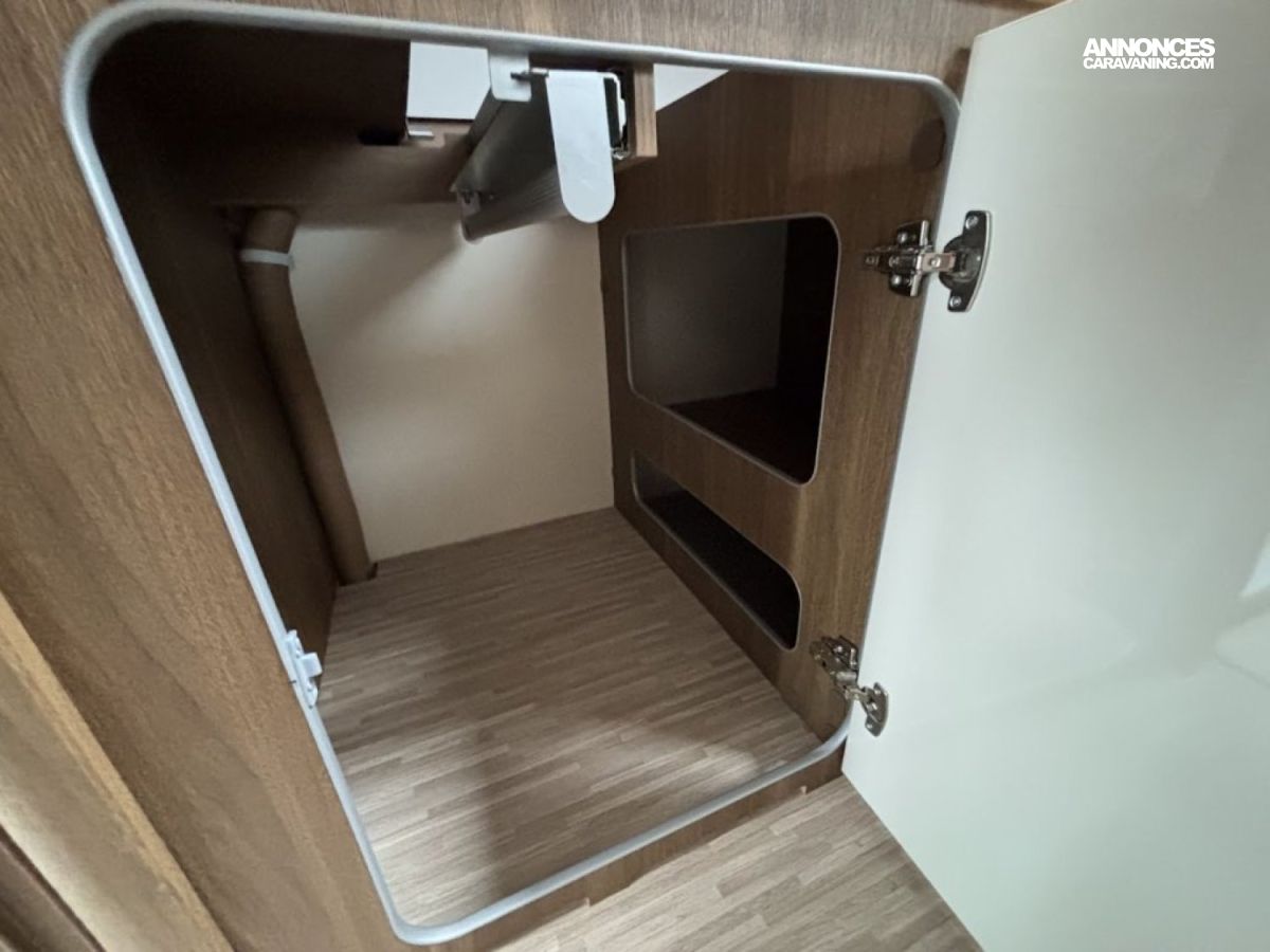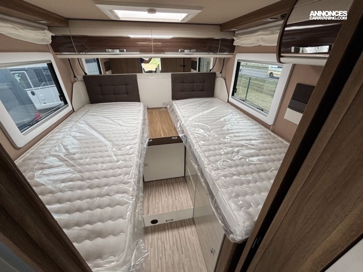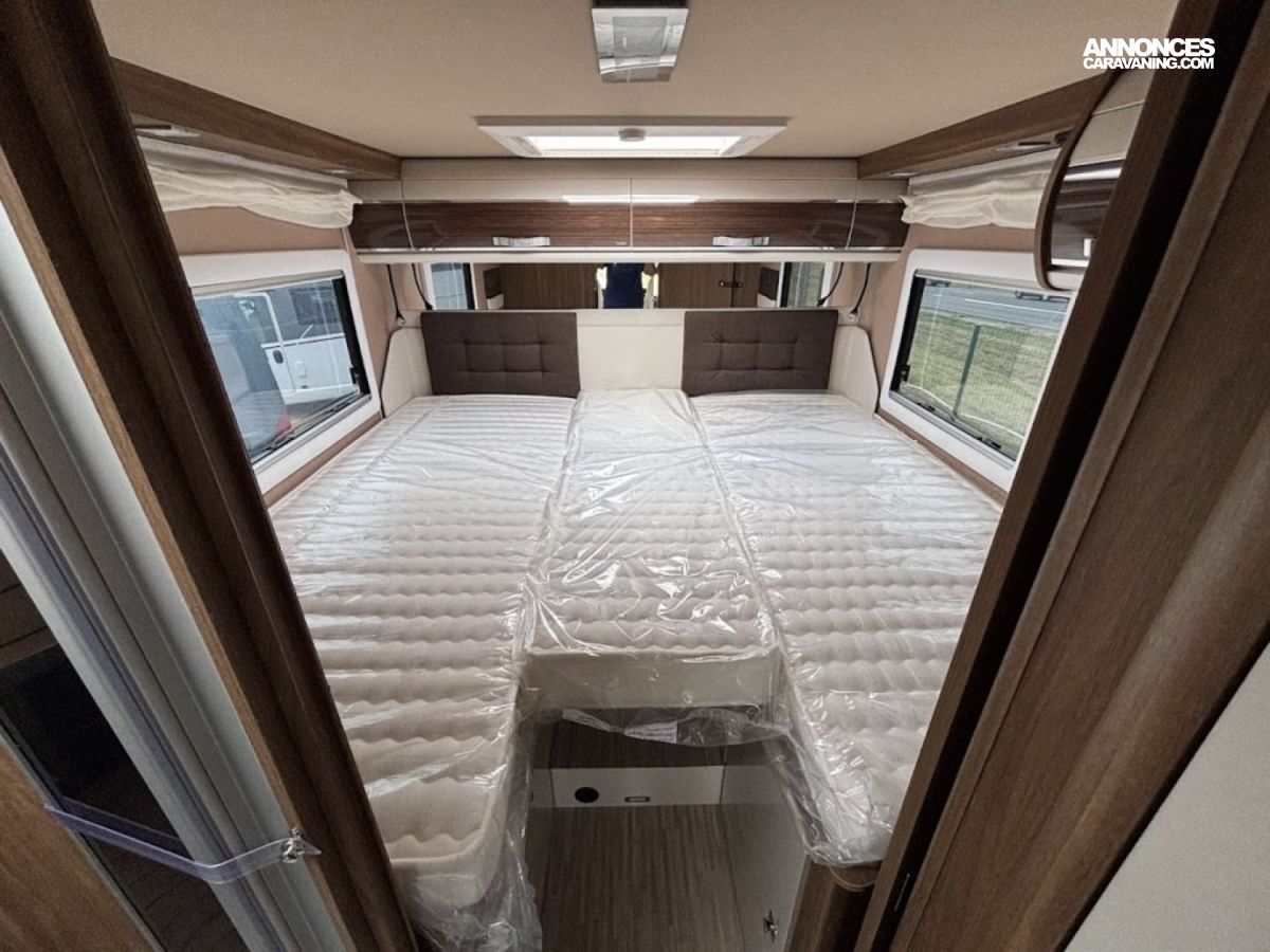 Jantes alu 16, Chassis alko, Porte cellule XL, Multimedia 9″, reservoir gazoil 90L, reservoir eau propre 145L, reservoir eau sale 135L, Chauffage combi 6, Double plancher, Boite automatique : DE SERIE
