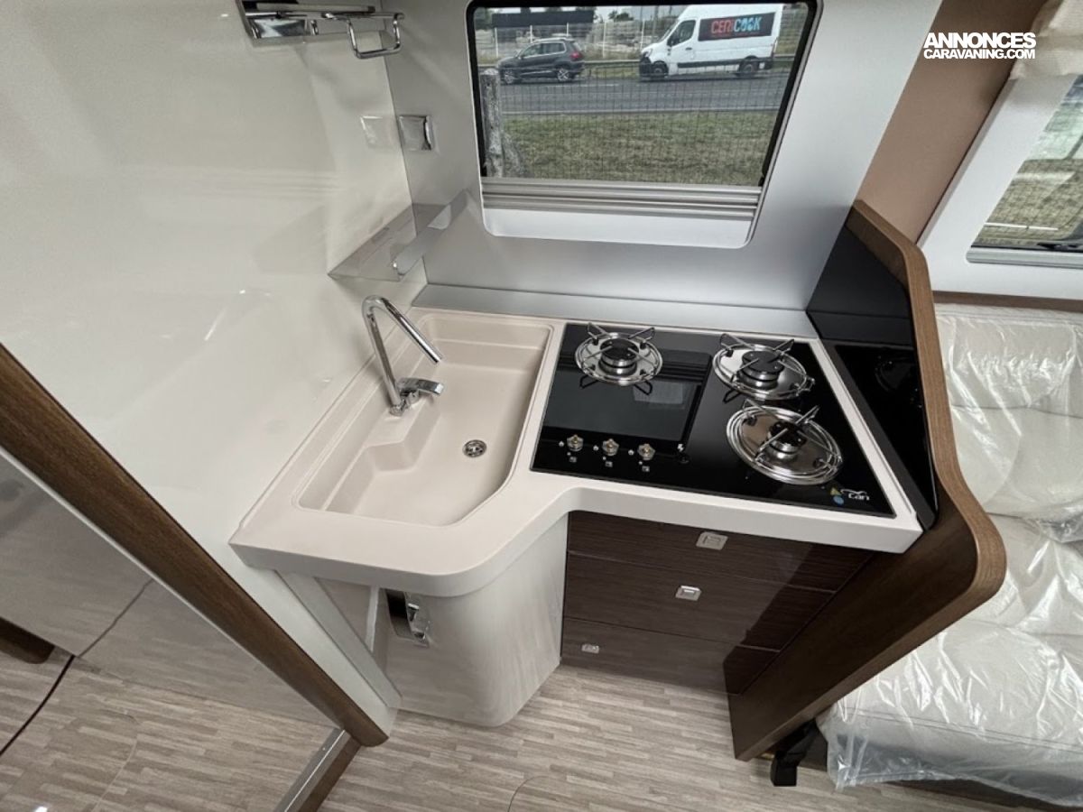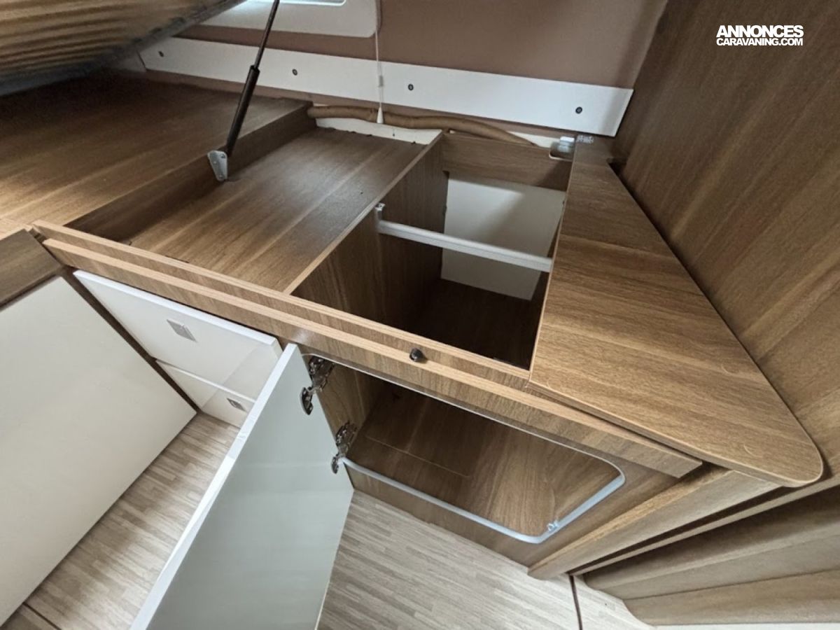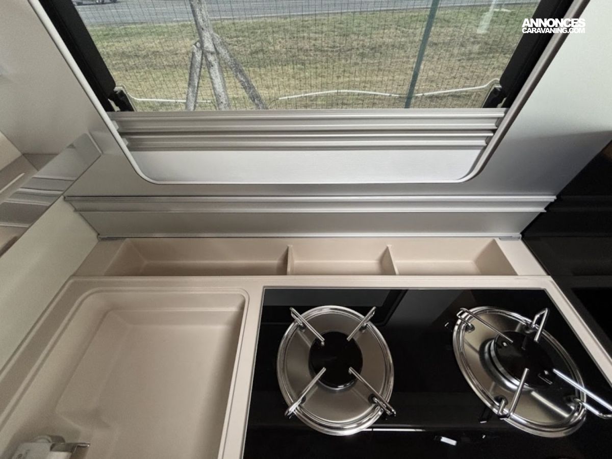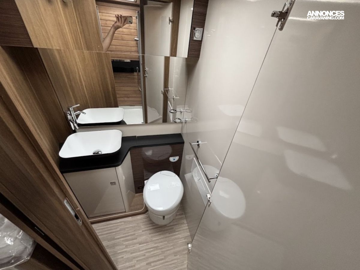 Jantes alu 16, Chassis alko, Porte cellule XL, Multimedia 9″, reservoir gazoil 90L, reservoir eau propre 145L, reservoir eau sale 135L, Chauffage combi 6, Double plancher, Boite automatique : DE SERIE