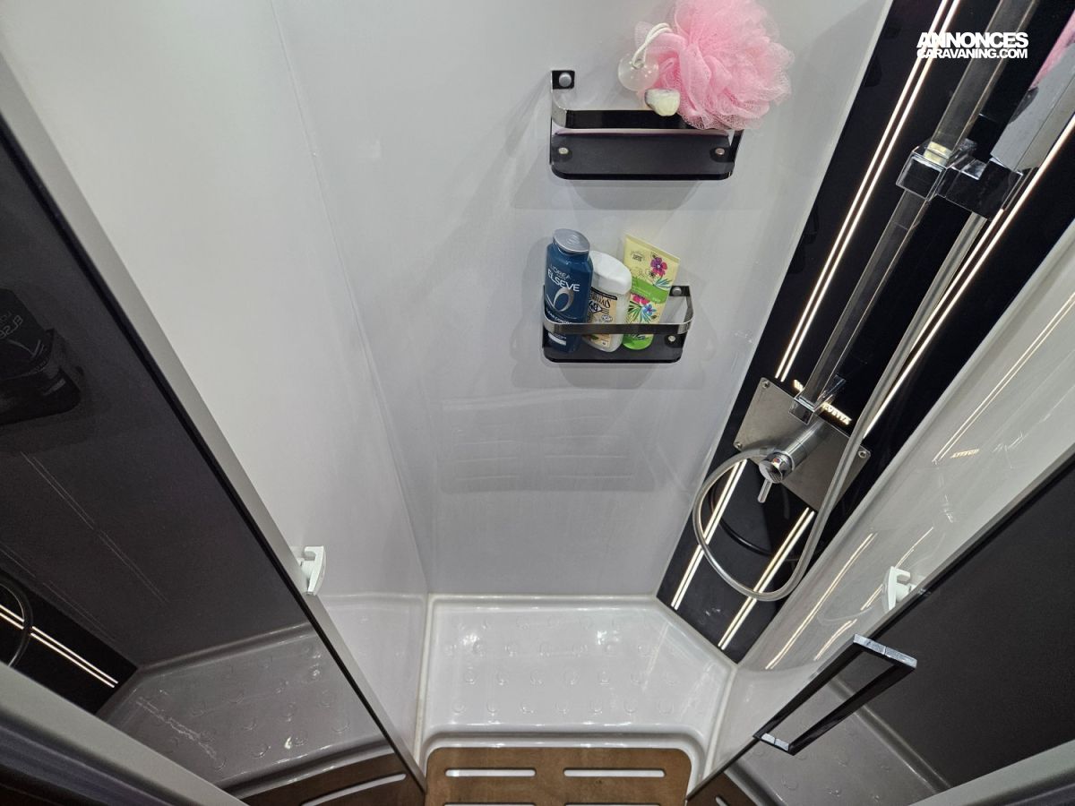 Les vitres et rétroviseurs électriques, la douchette extérieure, le porte vélos, les stores plissés de cabine complètent cet équipement très complet.