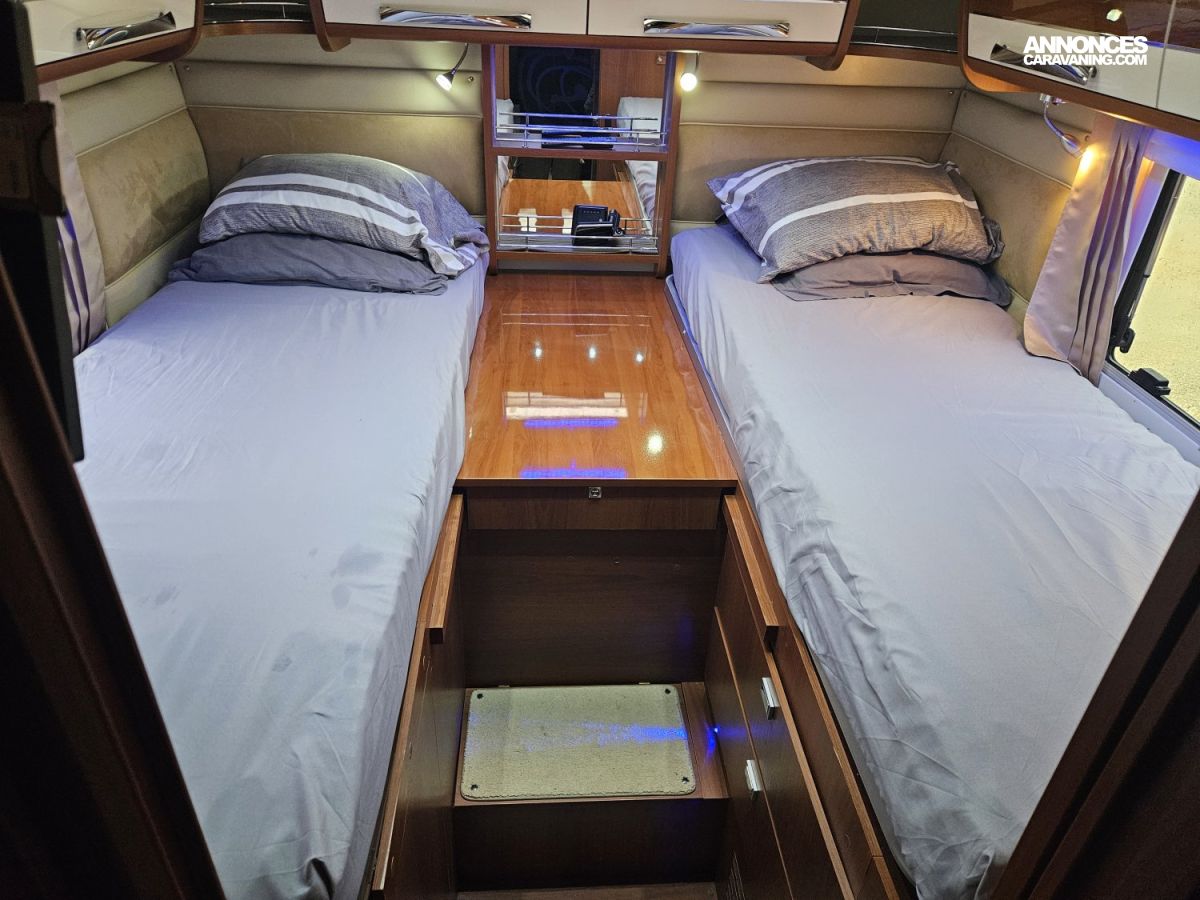 L'aménagement est composé de lits jumeaux arrière et d'un lit pavillon manuel, parfaitement intégrés et faciles d'utilisation.