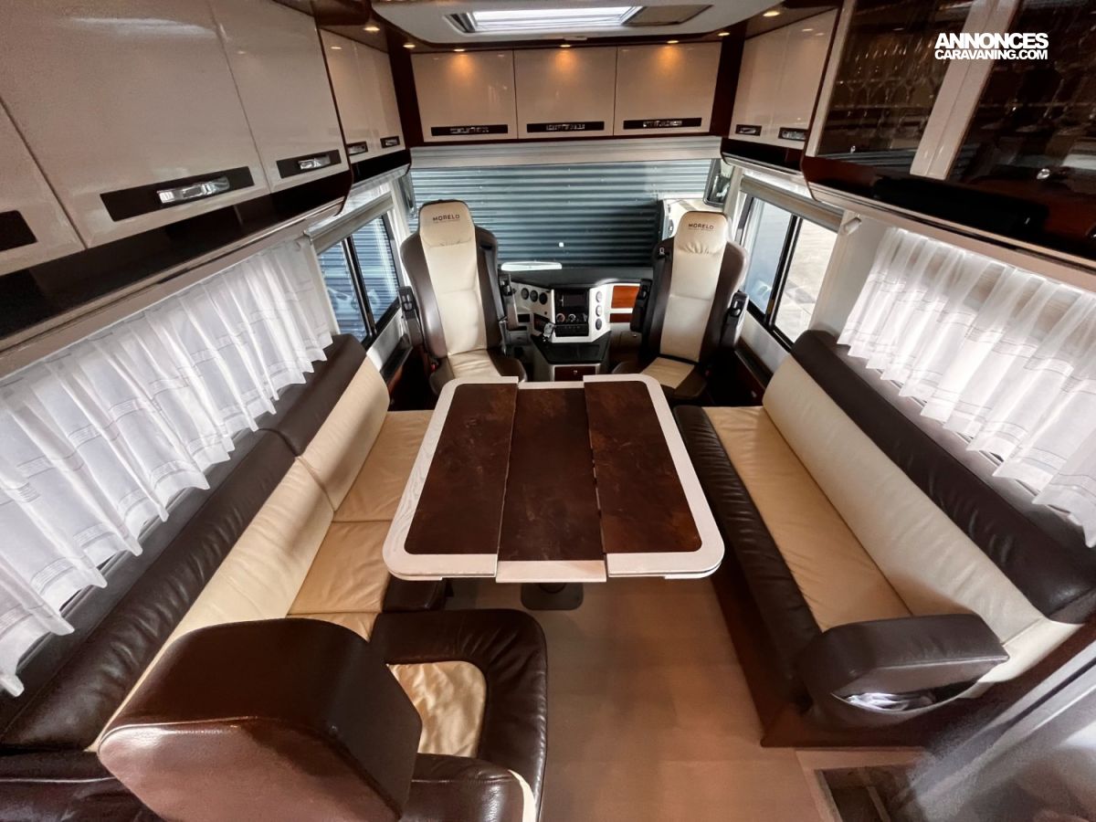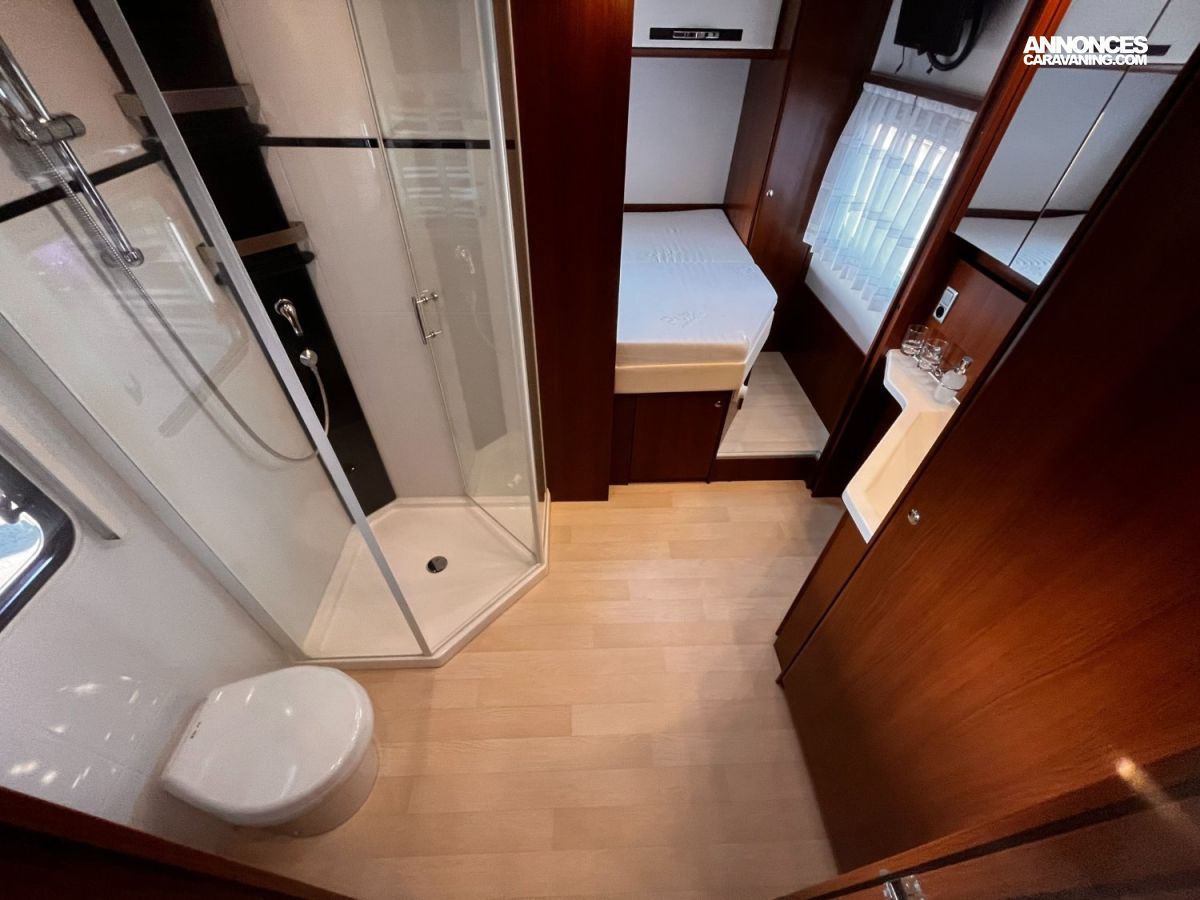 TABLE ABAISSABLE AVEC COUSSIN POUR COUCHAGE D'APPOINT, TABLE EXTENSIBLE ET COULISSANTE, CHAMBRE :, 2 BATTERIES 210 AH ET GESTION COURANT SECTEUR, GAZ : GPL 120 LTS + PROPANE 2 X 13 KG, TV/ MULTIMEDIA :, DECO :, MOQUETTE SISAL MOKA, CUIR BITON NAIROBI MALIBU, CHASSIS:, SUSPENSION PNEUMATIQUE AVANT / ARRIERE, CLIMATISATION CABINE, FREINS A DISQUES, PNEUMATIQUES 235/70R17.5 M+S, MARCHEPIED INTERIEUR CHAUFFE ET ECLAIRE, STORE ELECTRIQUE 6 M ECLAIRAGE LED, DECO EXTERIEURE CARBONE, CUISINE :, PLAN DE TRAVAIL CUISINE RESINE NOIRE, LANTERNEAU VENTILE DANS LA CUISINE, REFRIGERATEUR AES 190 L, FOUR A GAZ COMBINE GRILL, SALLE D'EAU :, RADIATEUR SECHE SERVIETTE, GRANDE CABINE DOUCHE AVEC PAROIS VERRE ET BARRE D'ETENDAGE, WC NAUTIQUE, BLOCAGE DIFFFERENTIEL, CHAUFFAGE CENTRAL ALDE GAZ / 220 V / ECHANGEUR MOTEUR, CHAUFFE-EAU INTEGRE, ENJOLIVEURS INOX 17'5, FREIN MOTEUR EVB, ABS, ASR, PHARES DE ROUTE HALOGENE, REGULATEUR ET LIMITEUR DE VITESSE, GROUPE ELECTROGENE ESSENCE TEC 29 2600 W, 3 PANNEAUX SOLAIRES, REGULATEUR SOLAIRE MPPT, GAZ / CHAUFFAGE :, ECHANGEUR THERMIQUE, ALARME GAZ, PRISE GAZ EXTERIEURE, CAPACITES :, GO : 180 L, EP : 350 L, EU : 250 L, WC : 250 LTS, VERINS HYDRAULQUES, PACK ELECTRIQUE « POWER PLUS » :, COMBINE CHARGEUR 100 A / CONVERTISSEUR 2000 W, ALARME, HABILLAGE SOFT MURS ET PLAFOND, SEJOUR :, DOUBLE LANTERNEAU PANORAMIQUE SEJOUR, PHARES ANTIBROUILLARD, ANTENNE SAT AUTO TWIN - TV 32" + TV 24 ", BARRE DE SON TV SEJOUR, 2 DEMODULATEURS TNT SAT, LIT 160 X 200 GRAND CONFORT TETES DE LIT RELEVABLES, MATELAS INDEPENDANTS GRAND CONFORT, ENERGIE :, FEUX DE CIRCULATION DIURNE, FEUX ARRIERES LED, CABINE :, CAMERA DE RECUL DOUBLE OPTIQUE, SIEGES DE CABINE A SUSPENSION PNEUMATIQUE, VOLANT AMOVIBLE, RETROVISEURS ET ESSUIE GLACES TYPE BUS PARE BRISE CHAUFFANT, CELLULE :, CLIMATISATION CELLULE