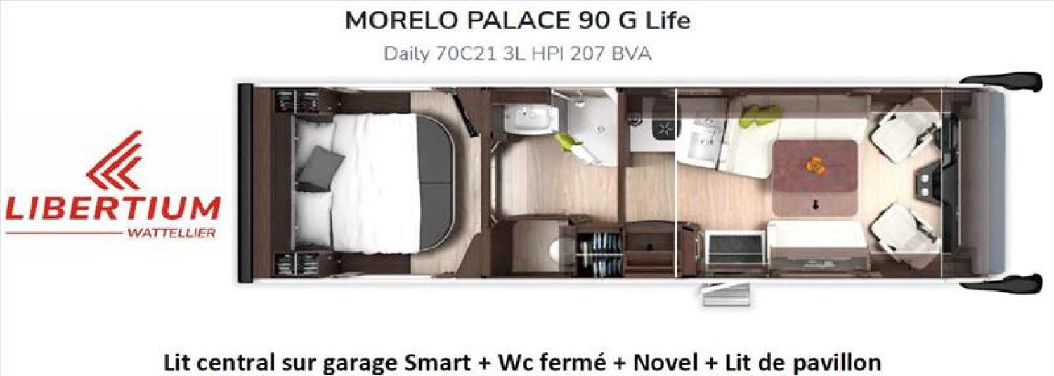 Ce Morelo Palace 90 G en 7.5 t vous autorisera à charger vos motos, votre quad ou encore votre Smart pour répondre à vos besoins de mobilité une fois posé sur votre étape. Profitez d'une offre exceptionnelle de 27 745 € sur le véhicule exposé en concession.