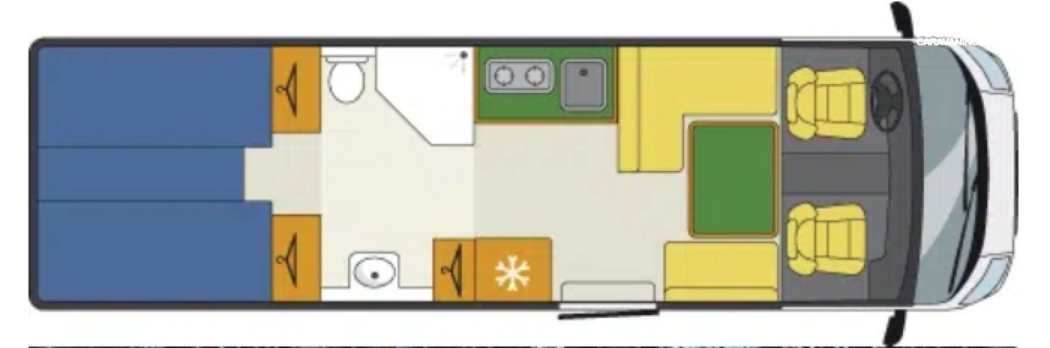- Lit KING SIZE sur toute la largeur du véhicule pour modèle L, incl; matelas multi-zones EvoPore et support "Watergel"