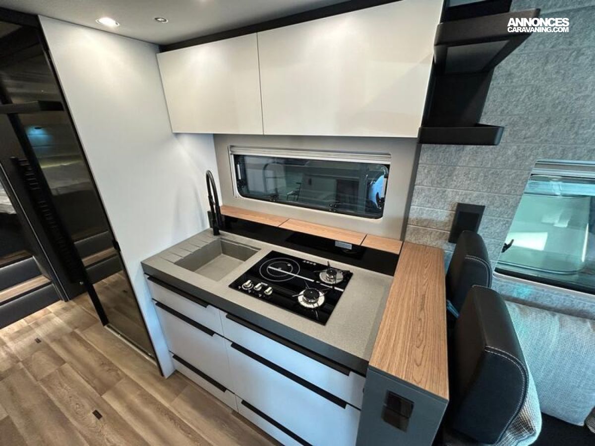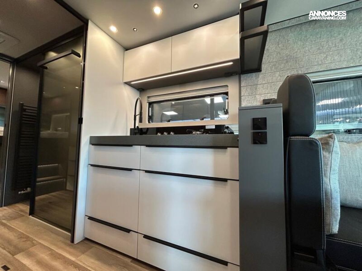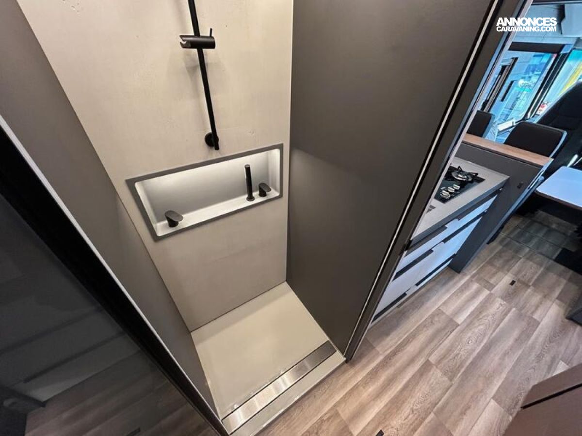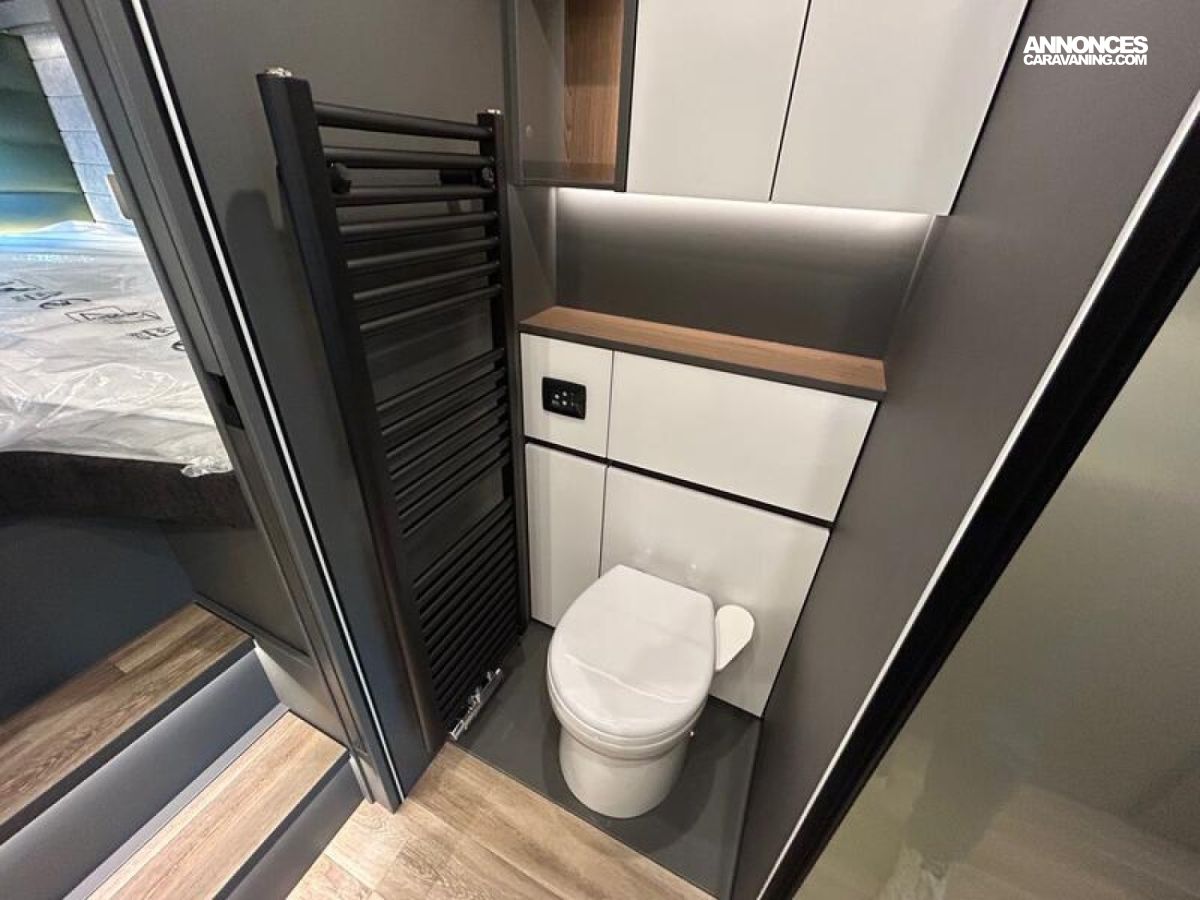 Attraction (cuir anthracite) + Armoire avec tringle à vêtements et tiroir à la place de suspension pour pantalons (pour le modèle 88) + Motorisation 125 KW/170 CV + Boîte de vitesses automatisée 9G-Tronic + Crochet d’attelage (amovible) + Vérins hydrauliques (AL-KO HY4) avec système de nivellement automatique et fonction pesée + Suspension pneumatique arrière avec mise à niveau + Sièges conducteur et passager, chauffants avec soutien lombaire + Feux anti-brouillard à LED 310€/Feux de croisement et de route à LED 1510€ + Ventilateur au-dessus de la cuisine + Système de rangement dans le double-plancher 95x85 cm + Store extérieur électrique, 6 m, éclairage LED & variateur + Lit de pavillon manuel en remplacement des placards avant + Banquette face à face transformable en banquette en L côté conducteur + Mini coffre fort + Machine à café (à capsules 230V) escamotable par push-lift dans le compartiment de rangement de la cuisine + Rangement coulissant 155 x 65 cm 930€/Rangement coulissant 125 x 65 cm 850€ + Tuyau de vidange escamoté dans un tube + Vidange à commande électrique du réservoir eaux usées + Détendeur de sécurité Truma DuoControl CS + 2 filtres pour bouteilles de gaz + Alarme en cas de fuite de gaz + Vidange à commande électrique du réservoir fixe WC Code V5001510A + Aération toilette SOG par le toit + Système de filtration de l'eau Aquaclear (procédé par traitement UV ) + Climatisation de toit chambre arrière (puissance de climatisation de 2.500 w. et de chauffage de 2.000 w + Échangeur de chaleur moteur + Prise de courant 230 V dans le garage + Prise gaz extérieure Code V50230JA + Valet pour les penderies situées sous les lits arrières : 52975 €