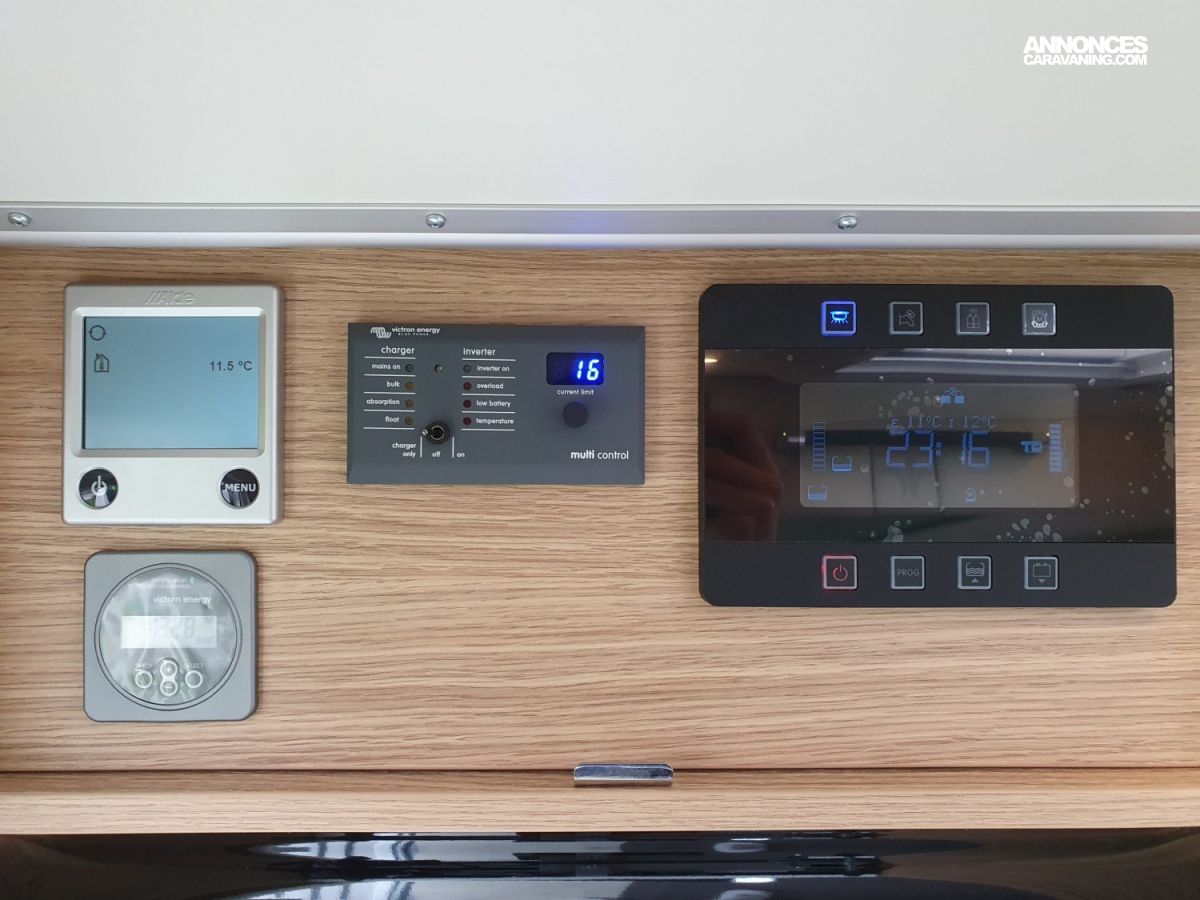 EQUIPEMENTS JANTES AMU 16/PTAC 5.5T/VOIE ELARGIE ESSIEU AVANT/PACK CONFORT/PACK LINER/PACK CONFORT CONDUITE/CLOU LINE DESIGN/CARBONE OPTIQUE/MOBILIER MODERN LINE/ECLAIRAGE ROSEAUX SALON+CHAMBRE/ECLAIRAGE INDIRECT MEUBLE TV/FULL CUIR BEIGE/LANTERNEAU PANORAMA/RANGEMENT COULISSANT COTE CONDUCTEURPORTE SOUTE CONDUCTEUR/VENTILATEUR DESSUS CUISINE/STORE 5.5M +LED/CUISINE ET BAIN MINERALE/TABLE RALLONGE TELESCOPIQUE/SYSTEME DE RANGEMENT DOUBLE PLACHER/RADAR DE RECUL/RADIATEUR SECHE SERVIETTE/DOUCHETTE EXT./DETENDEUR TRUME DUO/WC + BROYEUR 120L/CHAUFFAGE ALDE/FILTRES A GAZX2/BATTERIES LITHIUM...2 X TV + ANTENNE SAT AUTO + ANTENNE TNT/2 X PANNEAUX SOLAIRE/VERINS HYDRAULIQUE/CLIMATISATION 220V