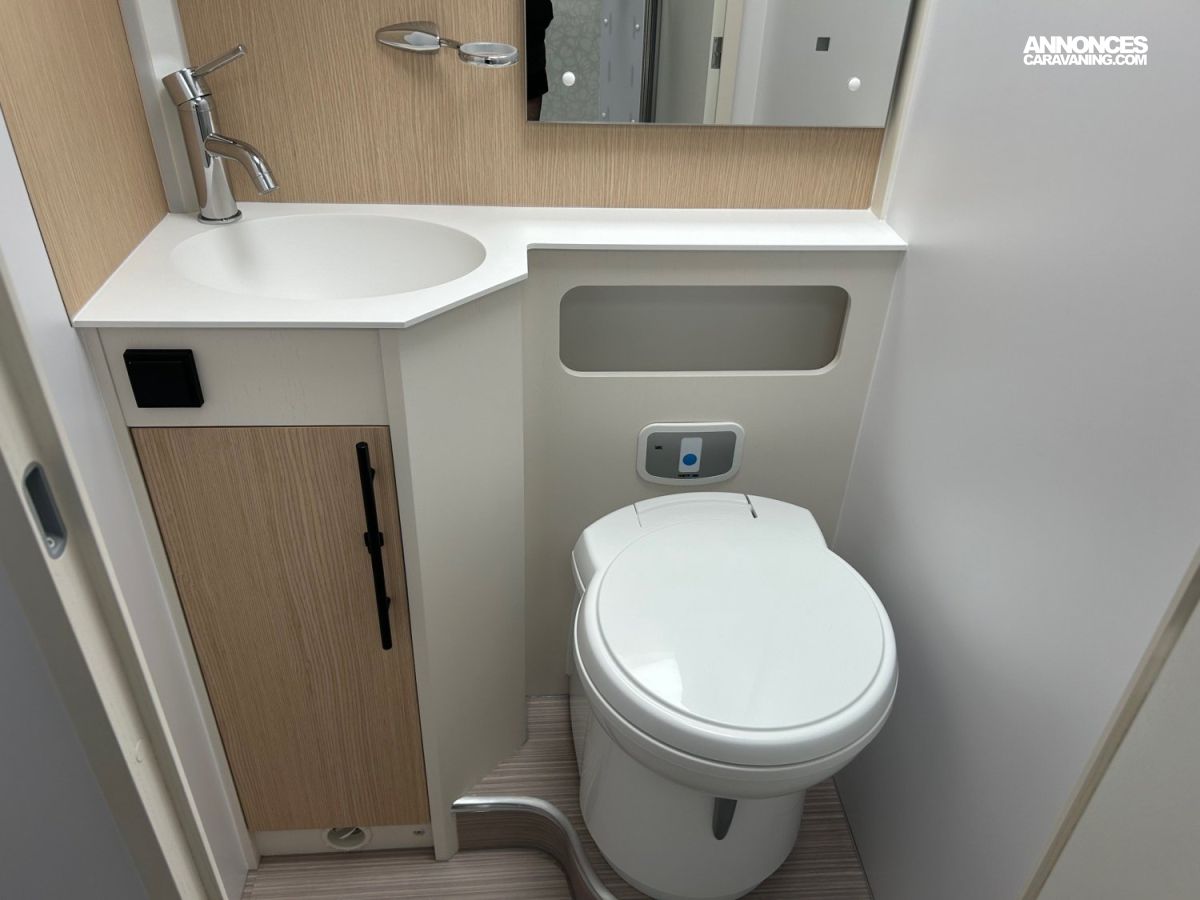 🚪 Porte de séparation coulissante en chambre 🛡️ Protection de sol 💡 Mobilier scandinave avec éclairage 4000K 🪑 Sellerie simili cuir “Métal” Un intérieur chaleureux, moderne et parfaitement pensé pour offrir un confort haut de gamme, de jour comme de nuit ✨. 💡 Projecteurs avant Full LED ❄️ Climatisation automatique porteur 📱 Chargeur de téléphone sans fil 🎛️ Radio 10’’ 🎥 Caméra de recul 🛞 Jantes bi-couleur 🛠️ Volant cuir avec habillage gris aluminium Un porteur moderne, puissant et agréable à conduire, idéal pour les longues distances comme pour les manœuvres du quotidien. 🔧✨ Pack Progress (inclus) : Ce pack très complet apporte confort, sécurité et finitions haut de gamme : 🔦 Antibrouillards + pare-chocs peint 📺 Support TV salon 🪟 Stores d’occultation cabine 🚪 Marchepied électrique 🔋 Prédisposition lithium 💧 Réservoir eaux usées isolé et chauffé 🧼 Tapis de cabine poste de conduite Un ensemble d’équipements qui améliore nettement le confort à bord et la facilité d’utilisation au quotidien. 🔥 Chauffage Truma Combi 6 EH ➡️ Fonctionnement gaz + électricité Un système performant, idéal pour voyager toute l’année, même en conditions froides.