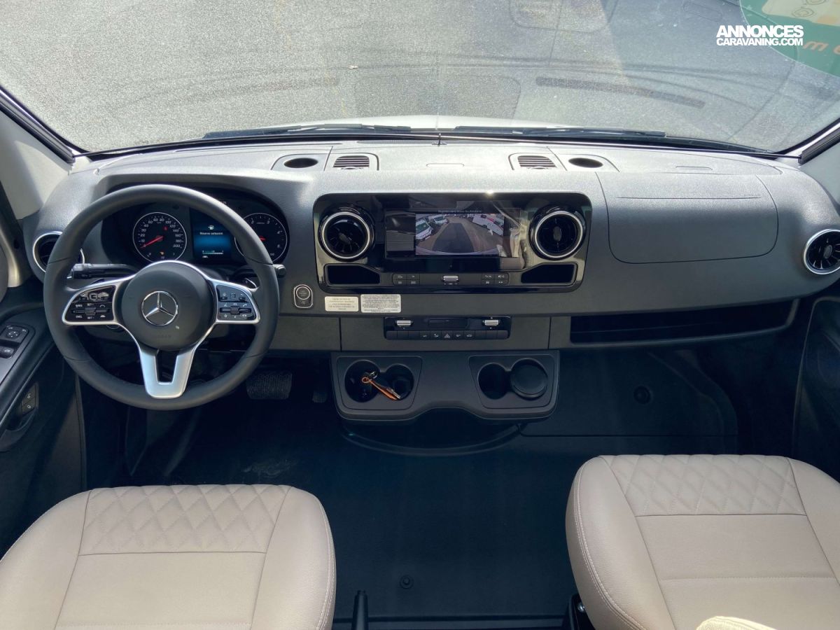 ASSISTANT FEUX DE ROUTE, PHARES ANTIBROUILLARD AVEC ECLAIRAGE ADAPTATIF, OCCULATION CABINE PAR STORES COULISSANTS, TAPINE CABINE POSTE DE CONDUITE, MARCHEPIED ELECTRIQUE, CABINE PEINTURE METALISEE GRIS, SIEGES PIVOTANT REGLABLES EN HAUTEUR, PARE-CHOCS COULEUR CARROSSERIE, JANTES ALU 17", AVERTISSEMENT FRANCHISSEMENT DE LIGNE ET ASSISTANT ALERT, CAMERA DE RECUL COULEUR SUR ECRAN MBUX, RESERVOIR EAUX USEES ISOLE ET CHAUFFE, SUPPORT TV SALON, LE PACK EXCLUSIV PORTEUR COMPREND :, VOLANT CUIR, LE PACK EXCLUSIV CELLULE COMPREND :, 2 PLACES AVEC FIXATIONS ISOFIX, AIRBAG CONDUCTEUR ET PASSAGER, AIDE AU DEMARRAGE EN COTE, SYSTEME MULTIMEDIA MBUX A ECRAN TACTILE 10 ", LE PACK AUTONOMIE ELECTRIQUE COMPREND :, BATTERIE LITHIUM, PANNEAU SOLAIRE 200 W + REGULATEUR MPPT, RETROVISEURS ELECTRUQUES ET CHAUFFANTS A GRAND ANGLE, AVERTISSEUR LIMITATION DE VITESSE, SYSTEME DE NAVIGATION SUR ECRAN MBUX