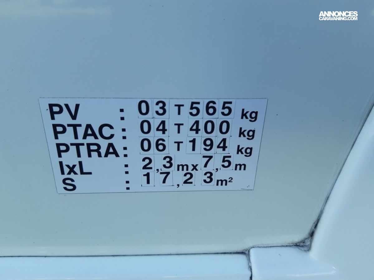 7.49m x 2.3m - Hauteur