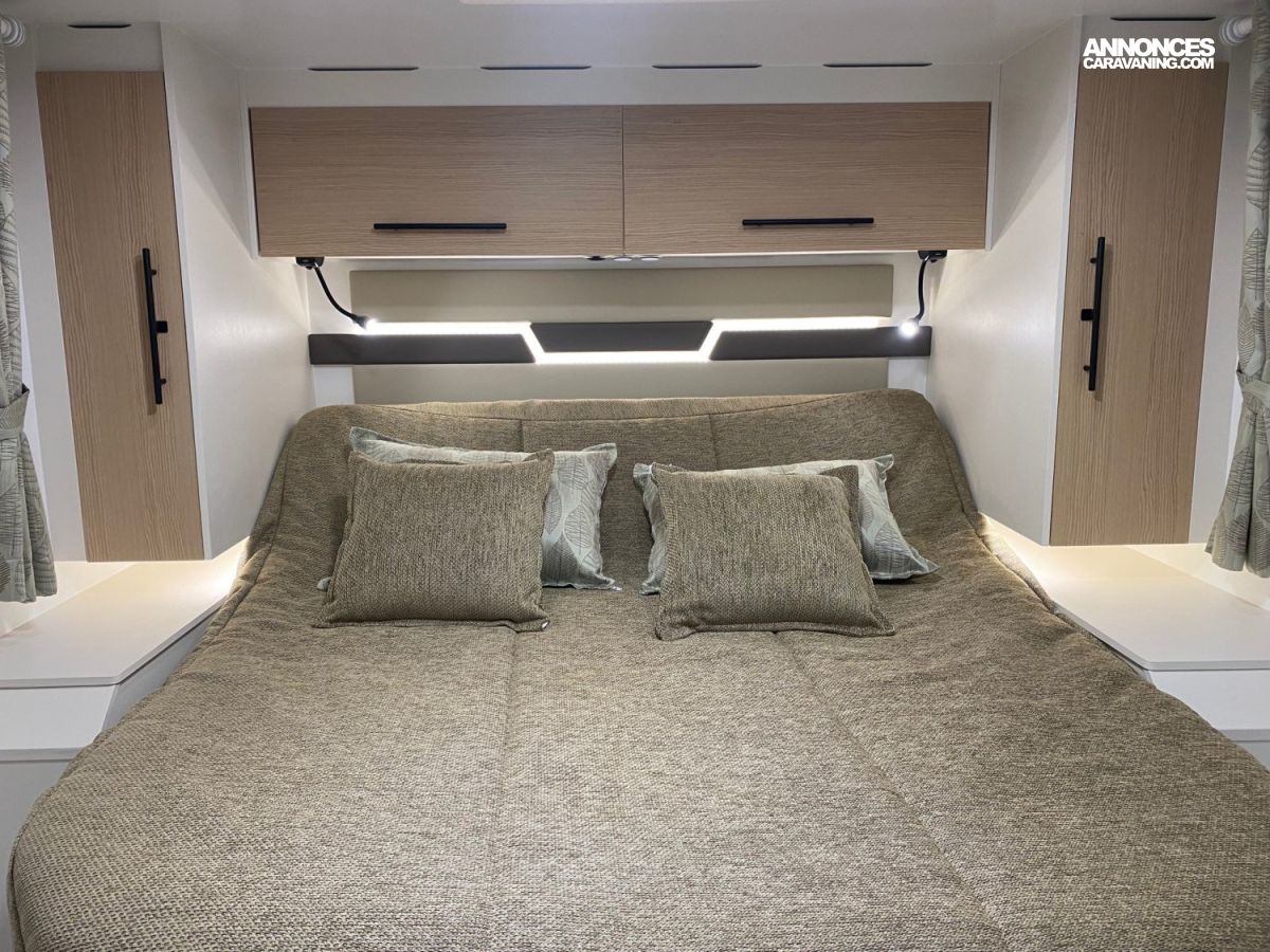 o PTAC : 4400 KG PTRA : 6194 o FIAT DUCATO 2.2 Lo Puissance DIN : 180 cv / puissance fiscale : 07 cho 4 places carte griseo 4 places couchageso Long : 7.49 mo Hauteur : 2.95 mo Intérieur très lumineux au design moderne et éléganto Grande soute traversanteo Eaux usées hors gel• Implantation :o Grand Lit central (150 x 200 cm)o Lit pavillono Nombreux rangements tiroirs• Nombreux Équipementso Boite automatique 9 VITESSES o Chauffage central ALDEo Climatisation de toit TRUMAo Combine autoradio / caméra de recul / GPS Alpine o Douchette extérieure o Mobilier scandinaveo Panneau solaire o Store extérieur avec éclairage LEDo Vision sécurité 360 ° avec 4 caméras