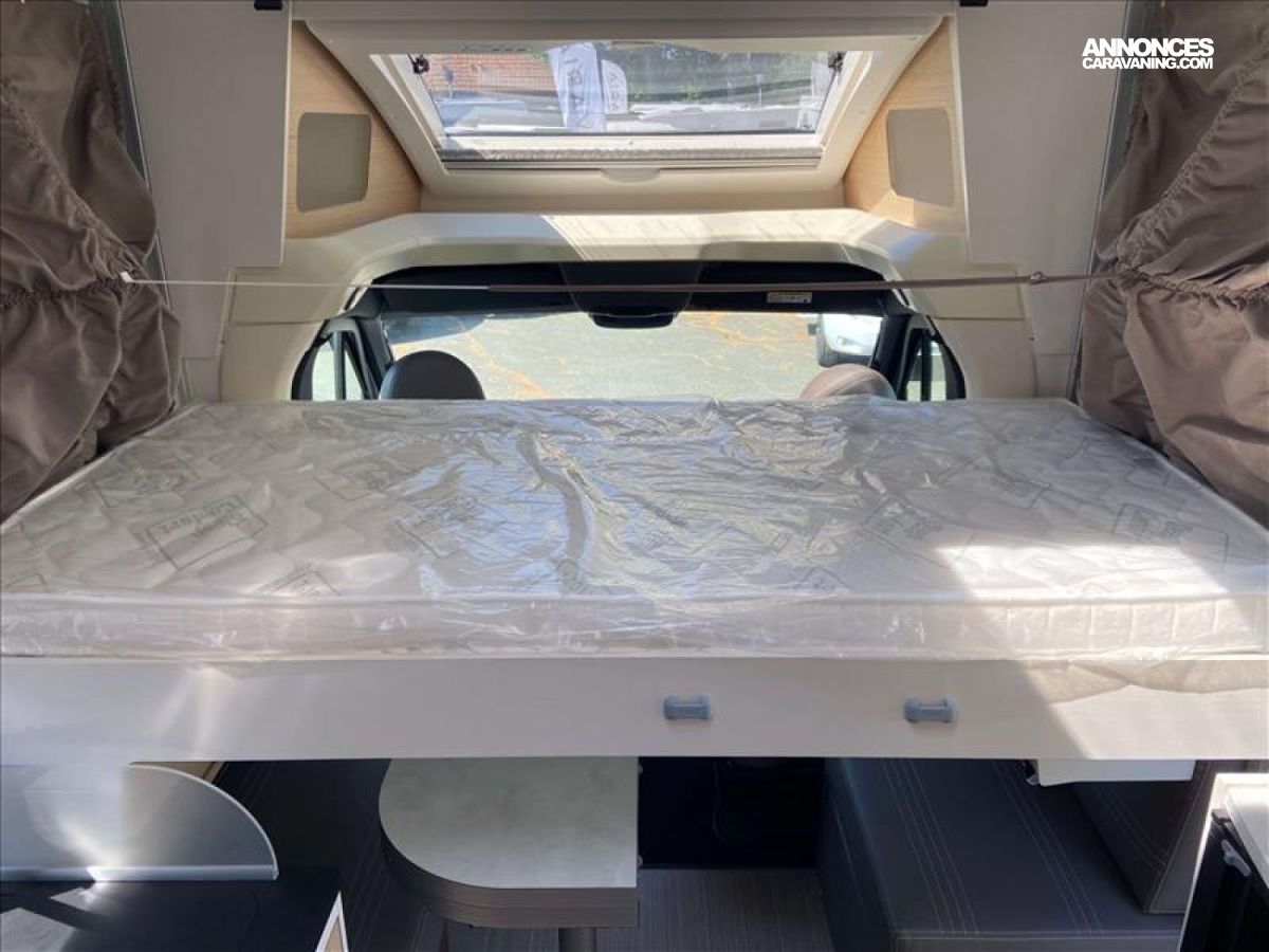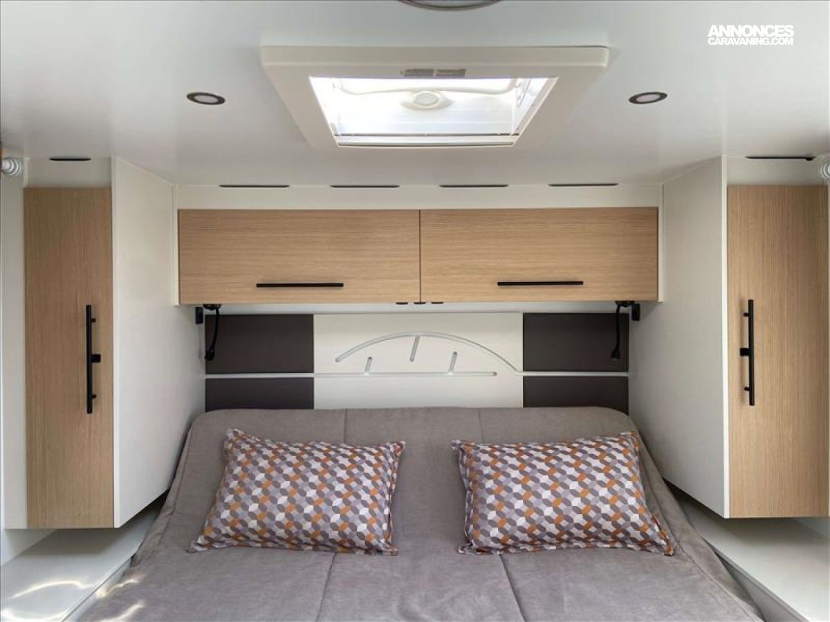 BOITE AUTO, LIT DE PAVILLON ELECTRIQUE 1 PLACE, PANNEAU SOLAIRE 130 W, ALARME VOLUMETRIQUE+PERIPHERIQUE+GAZ, JANTES 17", ANTENNE 4 G, 2 BATTERIES DE CELLULE, VENTILATION PAR FILTRE CHARBON WC, STORE OCCULTANT CABINE, TAPIS CABINE, VERINS DE STABILISATION MANUELS, COULEUR CAROSSERIE GRIS IRIDIUM, PARE-CHOCS COULEUR CARROSSERIE, AMBIANCE SCANDINAVE, PHARES AVANT FULL LED, PORTE DE CELLULE XL, MOUSTIQUAIRE DE PORTE, HOTTE ASPIRANTE