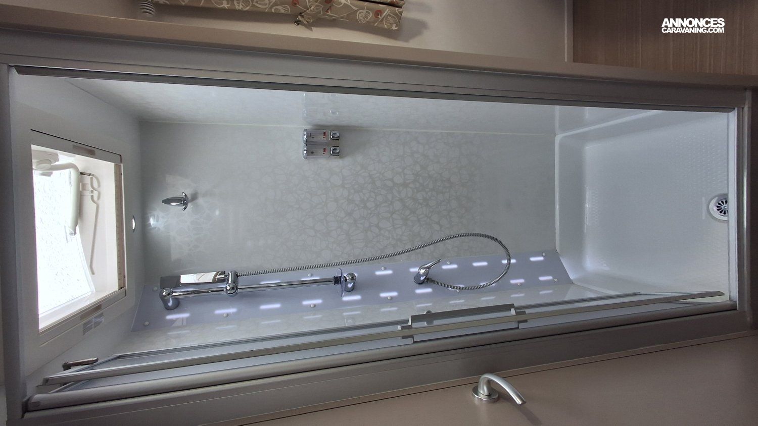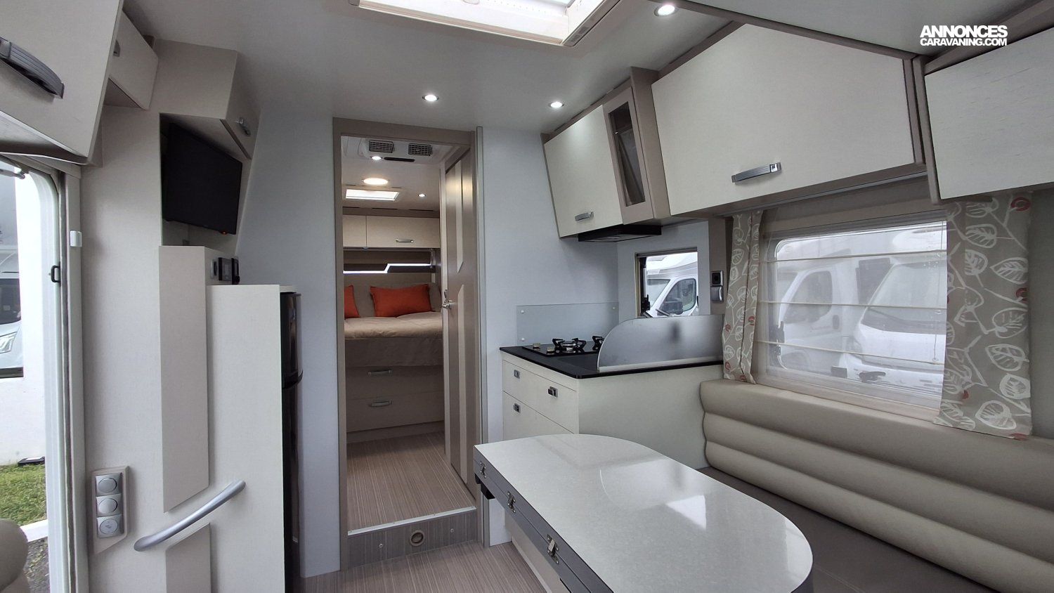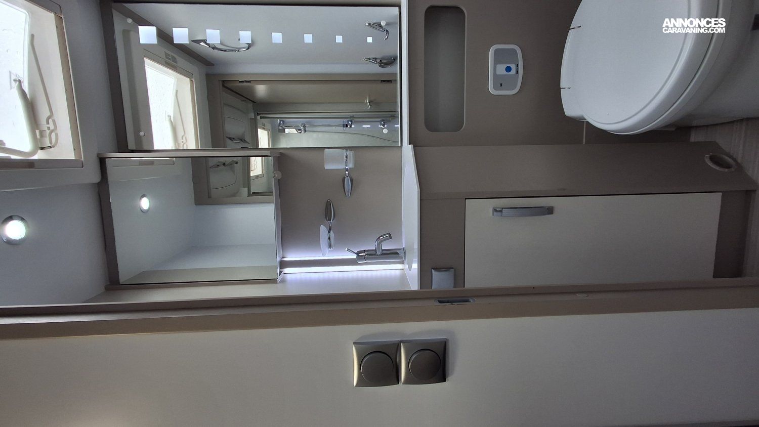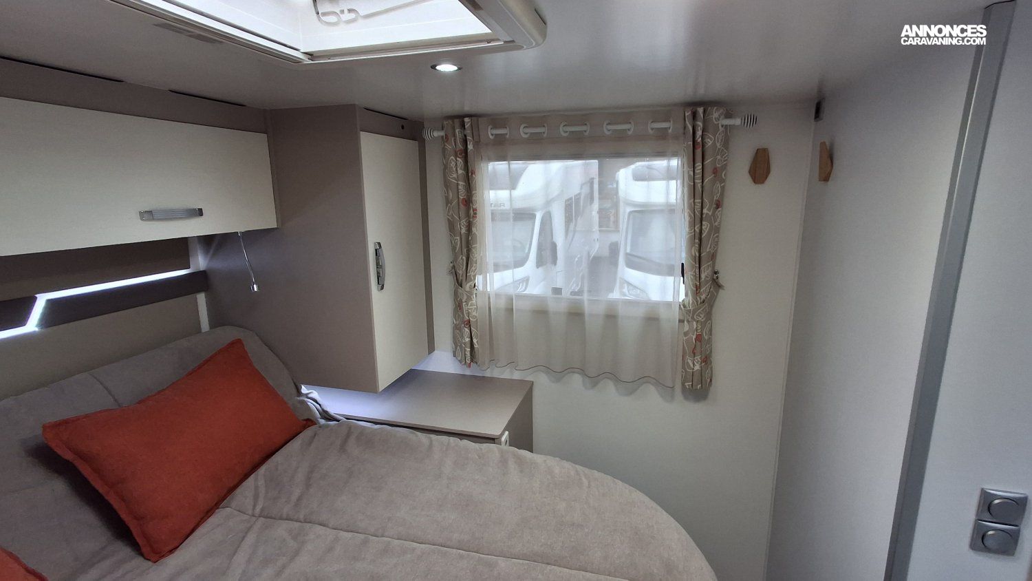 Rideau électrique parebrise, Antenne sat auto, Jantes alu, Store, BVA, TV, Autoradio camera de recul, Douchette exterieure, Convertisseur 2000W, Batterie lithium 100 amp, Climatisation cellule 220 V, Chauffage truma 6 EH