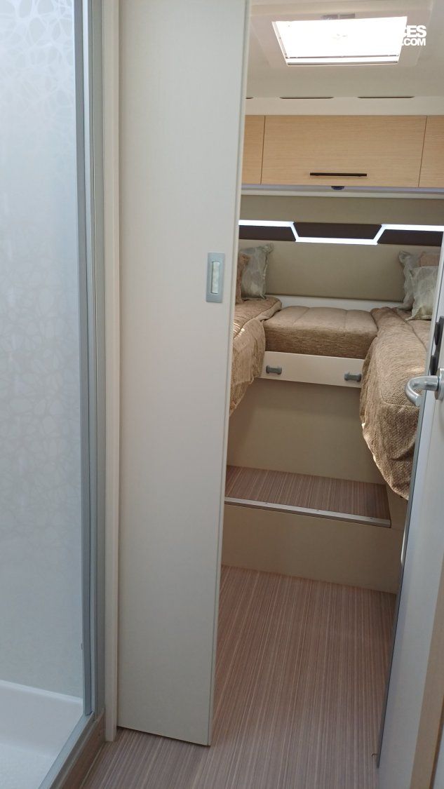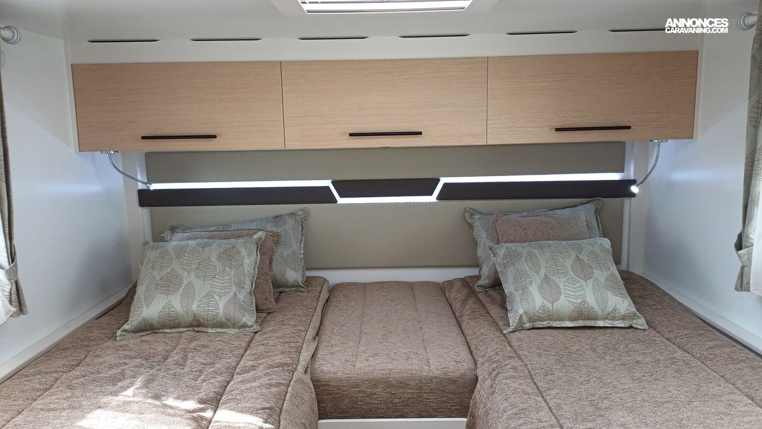 Boite automatique, Renforts des suspensions pneumatique, Antenne satellite auto + TV, Panneau solaire 150 W, Batterie lithium + convertisseur, Porte de séparation chambre, 2 rangements dans le double plancher, Store