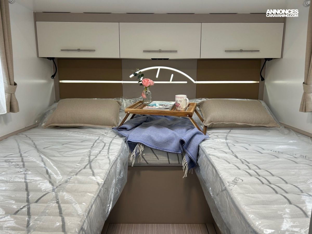 - Pensé pour l'élégance, l'ergonomie et la sérénité à bord, il propose une implantation en lits jumeaux offrant un accès facile, un confort réel au quotidien et une circulation fluide dans l’espace nuit. Parce que les vacances ne devraient jamais ressembler à une séance de contorsion.
