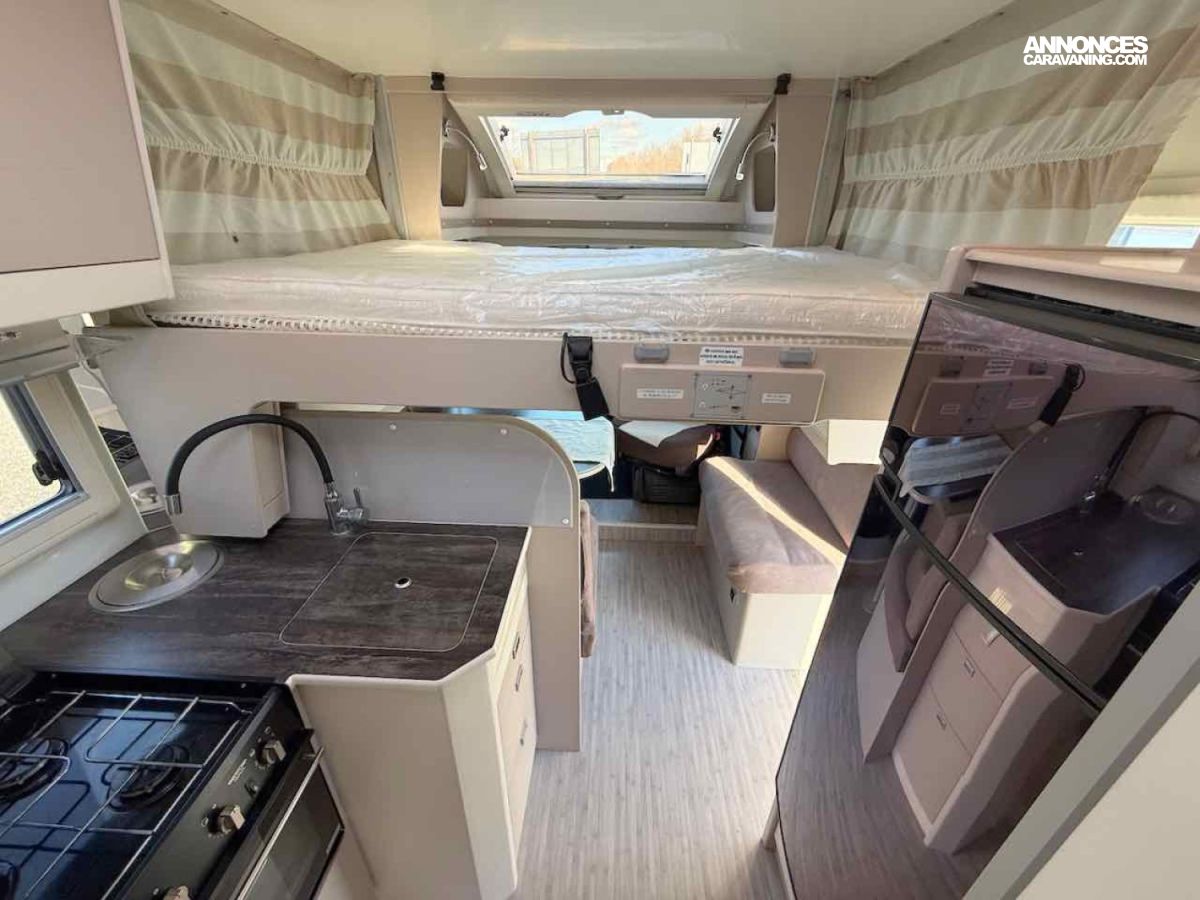 Lit sur soute permanent à l’arrière (190 × 135 cm) : spacieux, confortable et très accessible