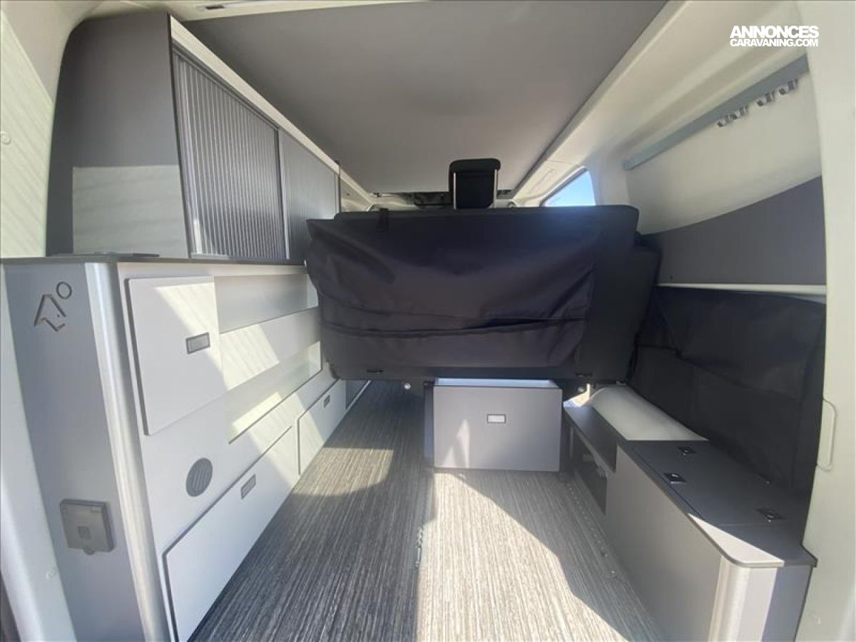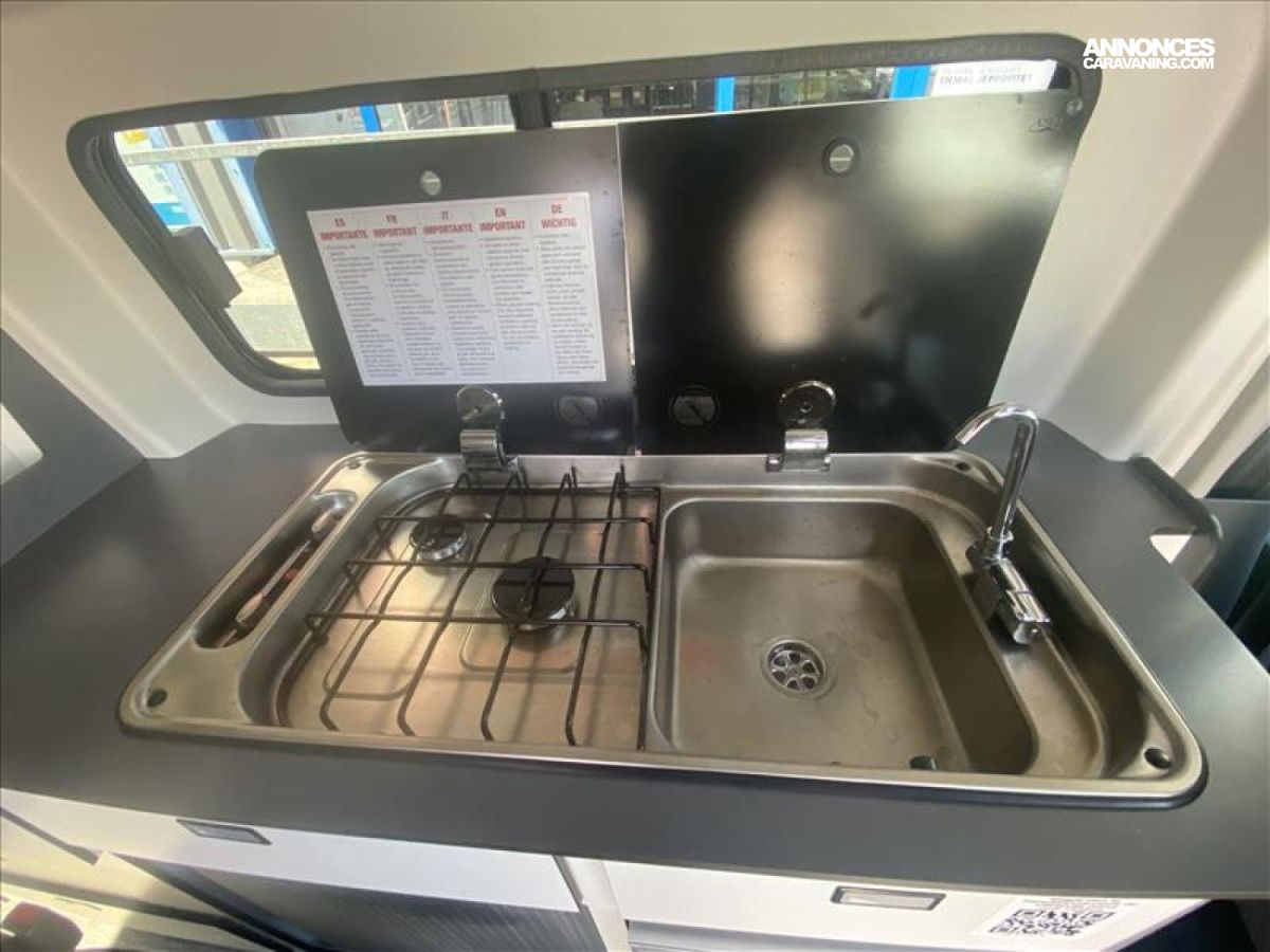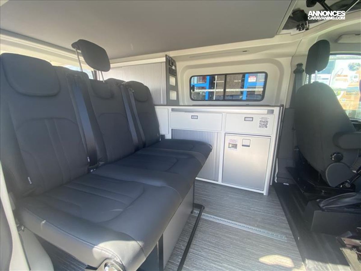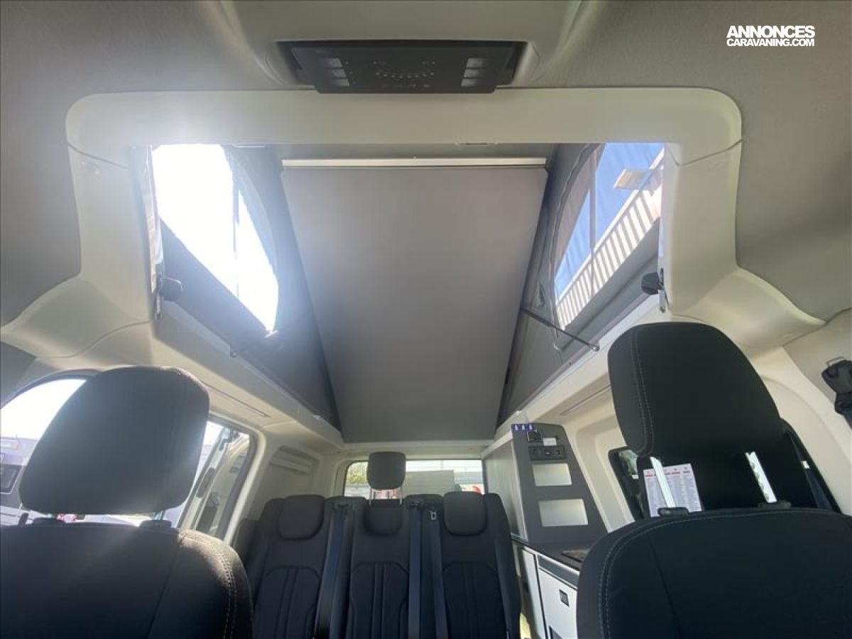 Réfrigérateur avec freezer, IsOlants baies intérieures (cabine/cellule), Nombreuses prises : 5x USB, 2x 12 V, 3x 230 V, Trépied de table extérieur, Douchette extérieure, - réservoir eaux usées chauffé, 5 places carte grise dont 2 fixations ISOFIX, Isolation renforcée XPS, Plaque de cuisson 2 feux et évier, Jantes alliage 16?, Système Audio 21 : système audio SYNC 2.5, réception radio D, 4 crochets d’arrimage, Nombreux rangements, revêtement stratifié, résistant aux cho, Pare-brise chauffant Quickclear, Essuie-glaces avant automatiques avec détecteur de pluie, Protections latérales, pare-chocs avant/arrière et poignées, Bavettes avant et arrière, Poids total autorise en charge (PTAC) 3200 kg, Bandes LED intégrées meuble, Phares halogènes avec feux de jour à LED, Allumage automatique des feux, Phares antibrouillard avant, PACK LIVING:, - Chauffage utilisant le carburant du véhicule (2000W), - WC portable, - marchepied électrique, - Inverseur 12V vers 230V (600W), Bluetooth®, commandes au volant, AppLink, Apple CarPlay, And, Prise de courant 12 V sur tableau de bord, Pommeau de levier de vitesses gainé cuir, Vitres teintées, Rétroviseurs extérieurs rabattables électriquement, Régulateur/limiteur de vitesse, Aide au stationnement avant et arrière, Aide au démarrage en côte, Contrôle dynamique de la trajectoire (ESP) avec ABS, Air conditionné à réglage manuel avec filtre à pollen, Verrouillage centralisé à commande à distance, PEinture metal GRIS LUNAIRE