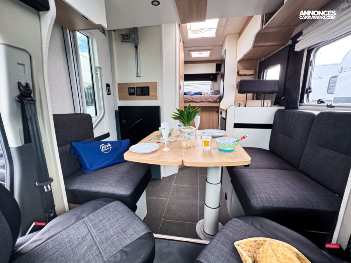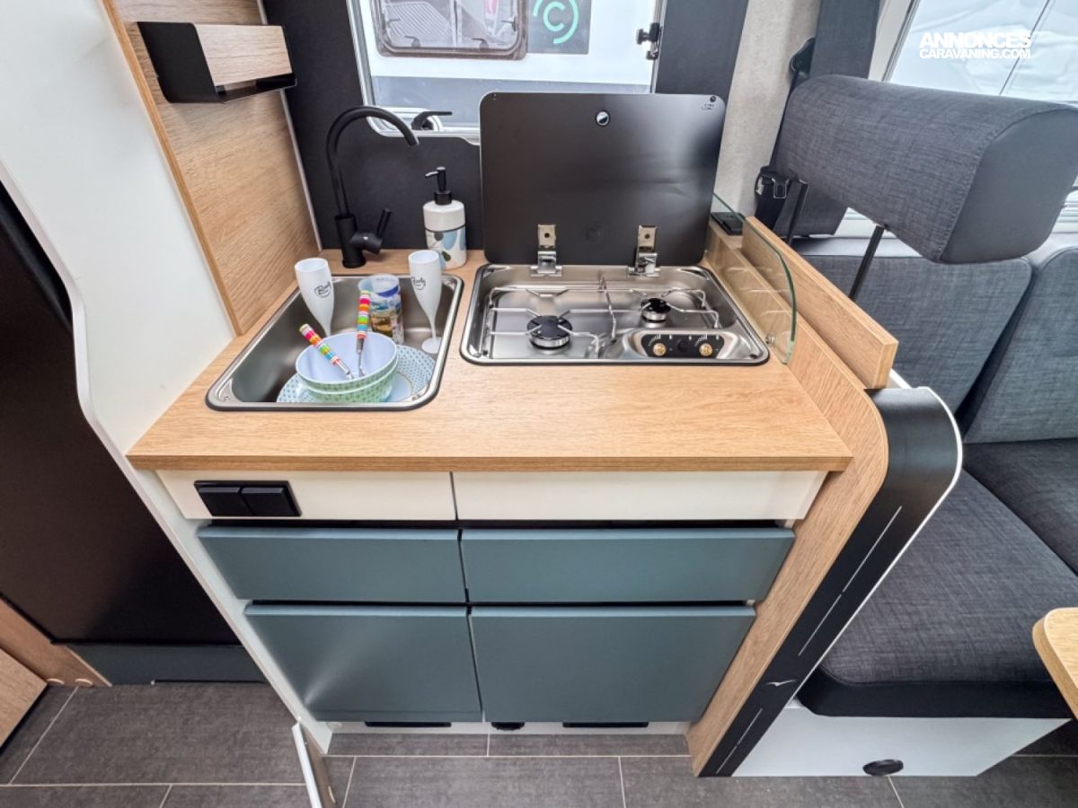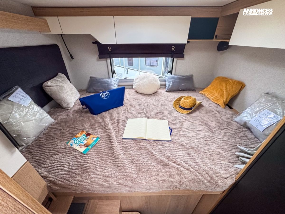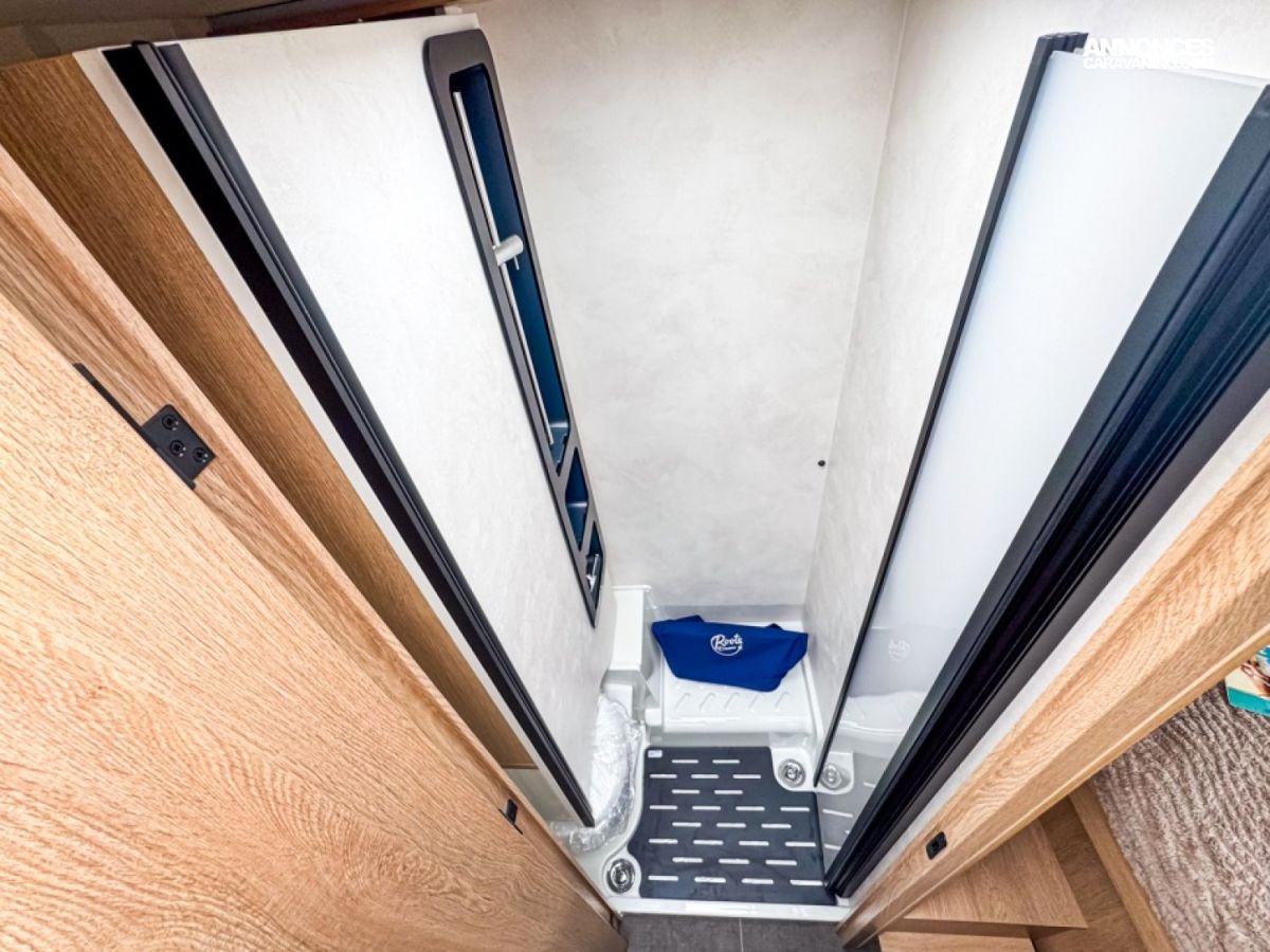PACK GRAND CONFORT : ECLAIRAGE, RAILS ET PRISE 230 V EN SOUTE, DOUCHETTE EAU FROIDE/CHAUDE ENSOUTE, STORE BANNE, CAILLEBOTIS DANS LA DOUCHE, DETENDEUR/INVERSEUR AUTOMATIQUE - CRASH SENSORTRUMA®, RESERVOIR DES EAUX USEES HORS-GEL, POUBELLE INTEGREE ET PORTE-SERVIETTE REPLIABLE