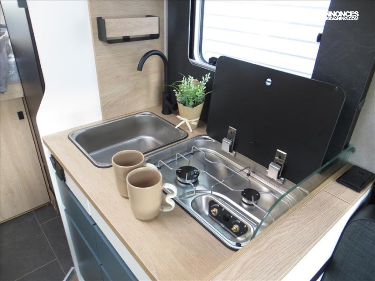 1 PANNEAU SOLAIRE MONO 100W, BATTERIE LITHIUM 105Ah, CAILLEBOTIS DANS DOUCHE, DOUCHE EXTERIEURE, ECLAIRAGE SOUTE, INVERSEUR DE GAZ CHAUFF ROULANT, PORTE SERVIETTE REPLIABLE, POUBELLE INTEGREE, PRISE 230 V EN SOUTE, RAIL ARRIMAGE SOUTE, RESERVOIR EAU CHAUFFE ET ISOLE, STORE BANNE, TRUMA COMBI 4