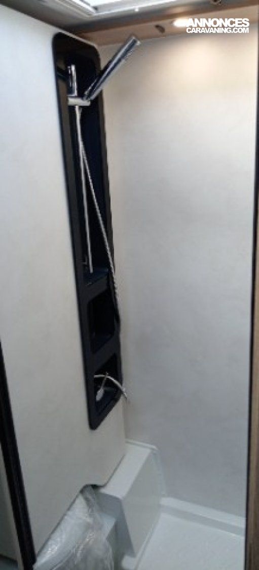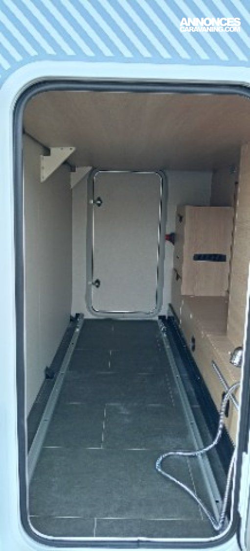 CAILLEBOTIS DANS LA DOUCHE, DOUCHE EXTERIEURE, ECLAIRAGE SOUTE, INVERSEUR GAZ CHAUFF ROULANT, PORTE SERVIETTE, PRISE 230V EN SOUTE, RAIL ARRIMAGE SOUTE, RESERVOIR EAUX USEES ISOLE ET CHAUFFE, STORE BANNE, TRUMA COMBI 4