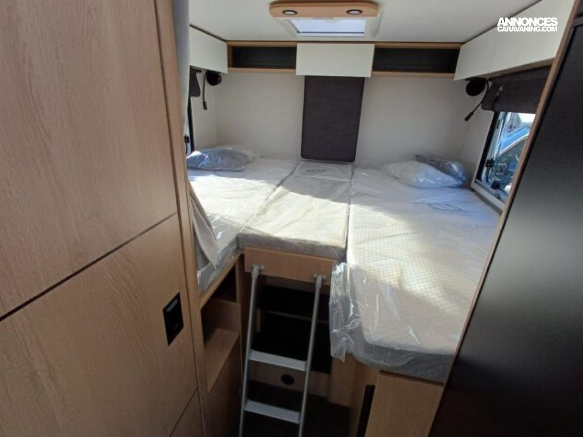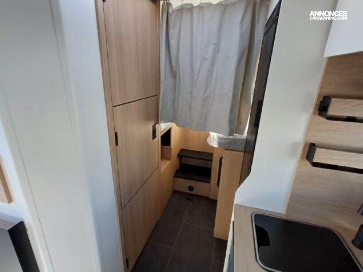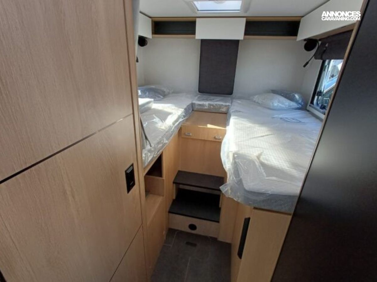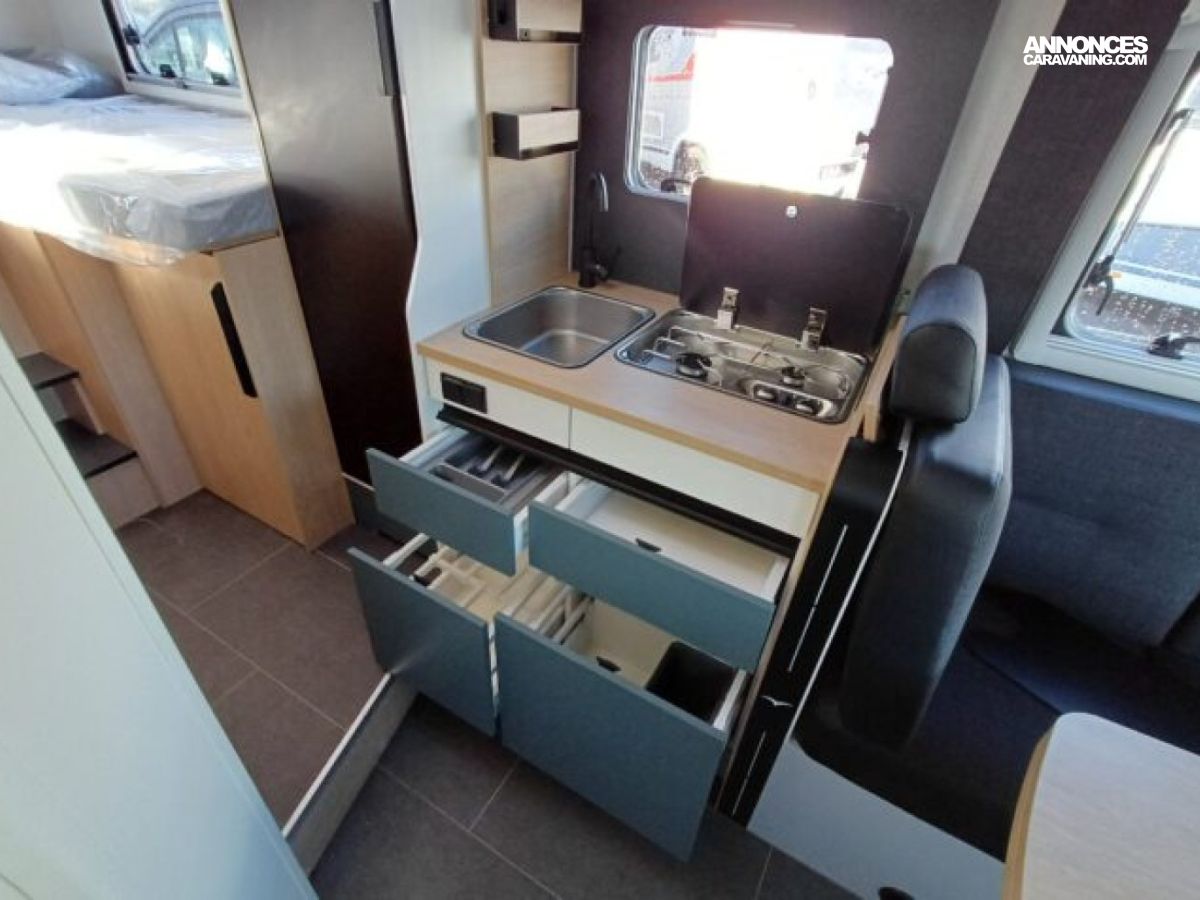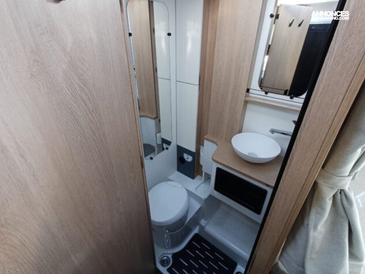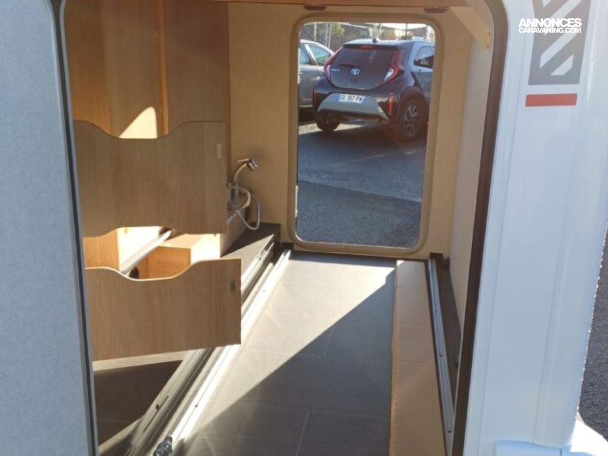 Soit : éclairage, prise 230V et rails en soute, douchette, store banne, caillebotis, inverseur automatique, crash sensor, réservoir eaux usées hors-gel, poubelle intégrée et porte-serviette