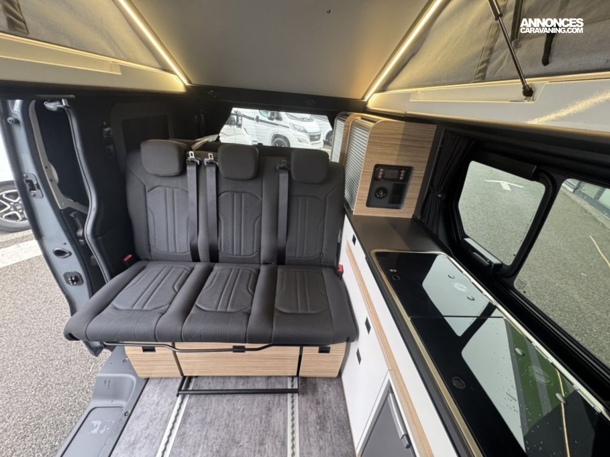 Avec seulement 5,08 m de long et 2,00 m de hauteur, il se conduit comme un véhicule du quotidien tout en offrant jusqu’à 4 couchages grâce à son toit relevable, et 5 places carte grise. Son format permet l’accès aux parkings standards, centres-villes et zones à hauteur limitée.