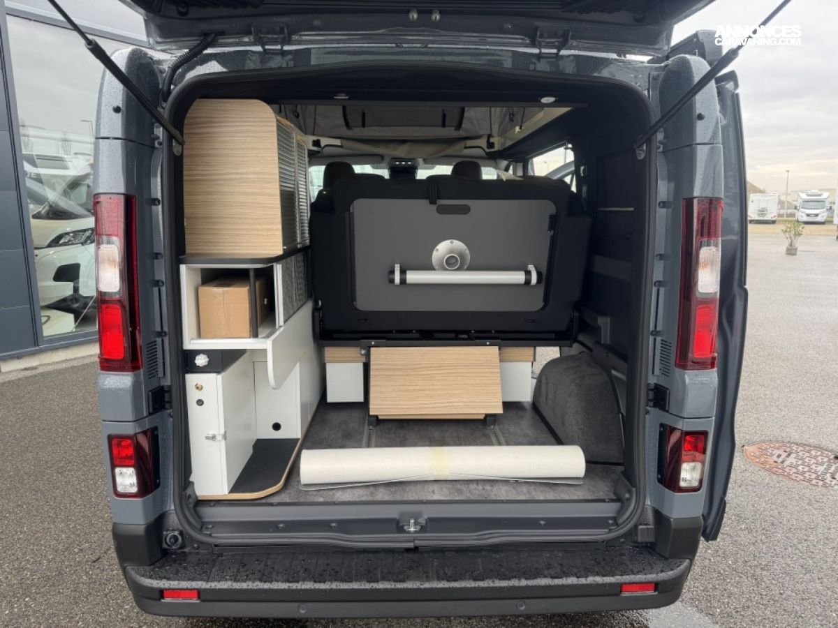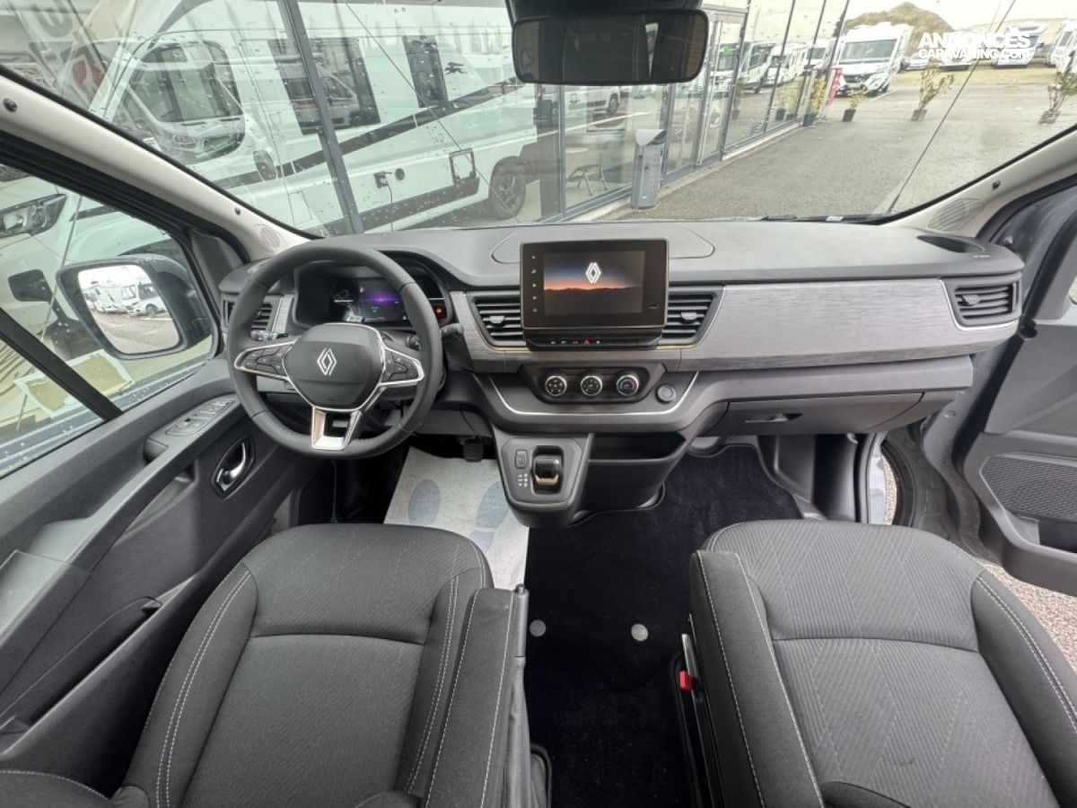 Motorisé par le Renault Trafic 2.0 dCi 150 ch avec boîte automatique, il assure une conduite souple et confortable, aussi bien sur route que lors de longs trajets. Son chauffage diesel, son panneau solaire et son équipement complet en font un van parfaitement adapté au voyage autonome.