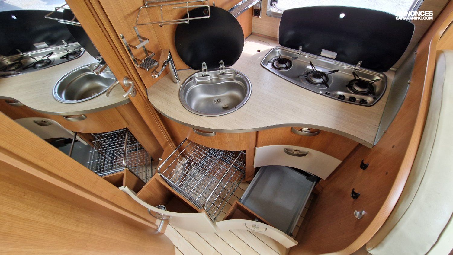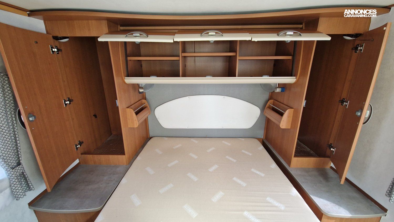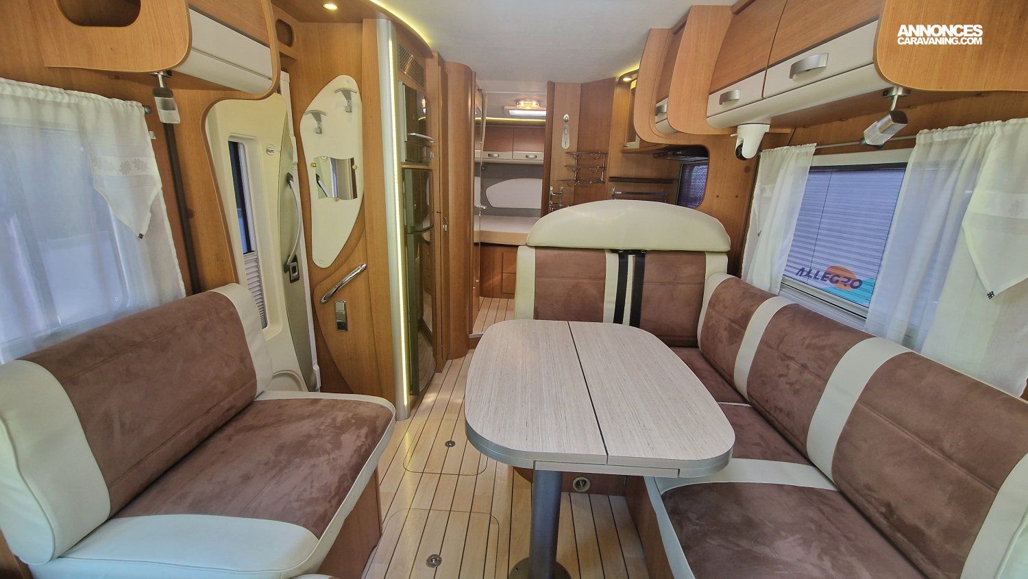Une implantation idéale pour un couple ou une famille : lit permanent central et lit de pavillon aux dimensions généreuses, cuisine toute équipée, salon spacieux et convivial, cabine de douche et cabinet de toilette indépendants.