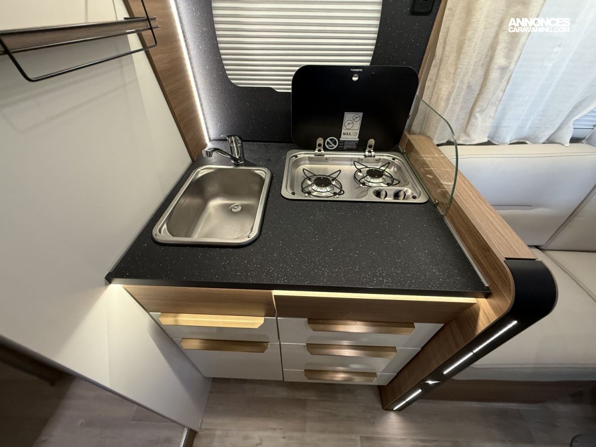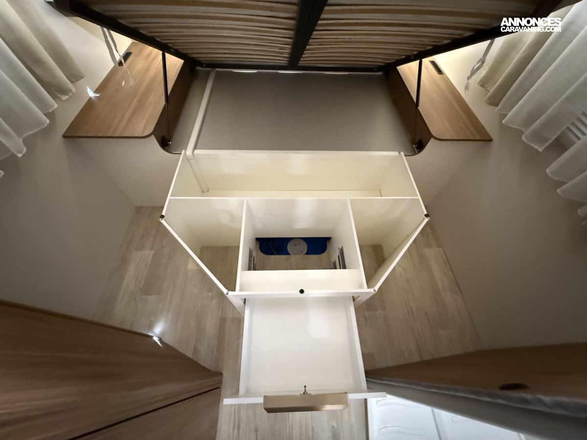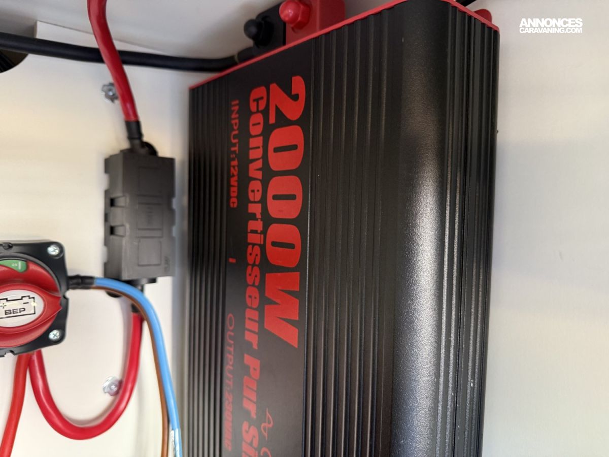 CHAUFFAGE COMBI HYBRIDE, STORE EXTERIEUR 4.5M, GAZINIERE 2 FEUX, TIROIRS FERMETURE RALENTIE, DOUCHETTE DANS SOUTE, DOUCHE ET WC SEPARES, ECLAIRAGE LED, MOQUETTE CABINE, MOUSTIQUAIRE DE PORTE CELLULE, REFRIGERATEUR 150L, REFRIGERATEUR TRI MIX, STORES PLISSES DE CABINE, VOLET EXTERIEUR ISOTHERME, DOUBLE CLOISON DE SEPARATION, SALON FACE A FACE, RESERVOIR EAUX USEES HORS GEL