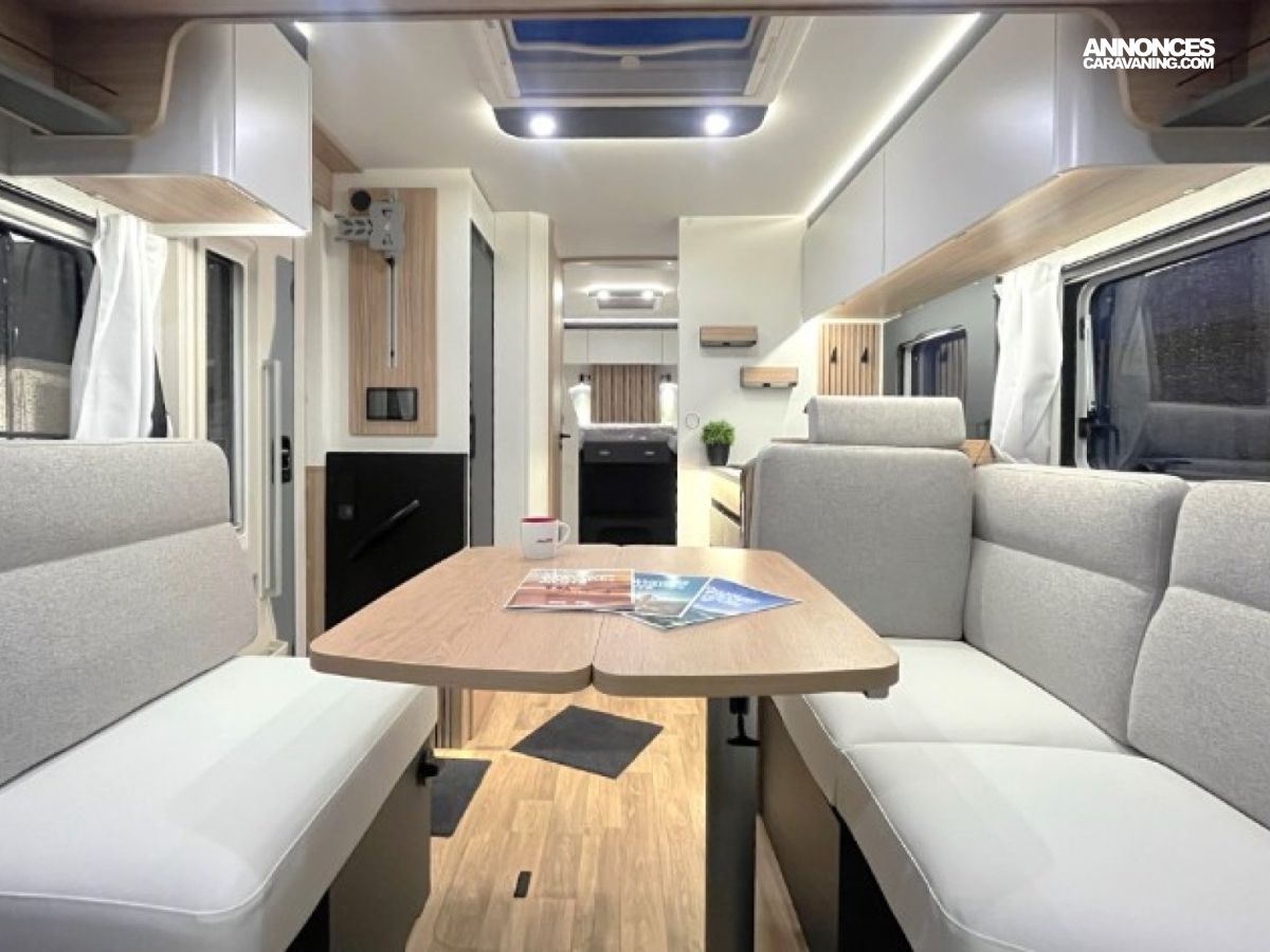 (JANTES ALLIAGE 16'' + VOLANT CUIR + AERATEUR GRIS ALU), 1 PANNEAU SOLAIRE MONO 100W, 2EME PANNEAU SOLAIRE 100W, AMBIANCE MOBILIER PYLA, AUTORADIO 9'' DAB GPS, BATTERIE LITHIUM 210AH, CAILLEBOTIS DANS DOUCHE, CAMERA DE RECUL, CENTRALISATION, CONVERTISSEUR 2000 W, DOUCHE EXTERIEURE, ECLAIRAGE PENDERIE, ECLAIRAGE SOUTE, PACK JANTES, PORTE SERVIETTE REPLIABLE, POUBELLE INTEGREE, PRISE 230 V EN SOUTE, Prix au tarif en vigueur au moment de la livraison, RAIL ARRIMAGE SOUTE, SELLERIE SAND, TABLE CENTRALE PAPILLON, TIROIR BAS DE CAISSE, TRUMA COMBI DIESEL 6E