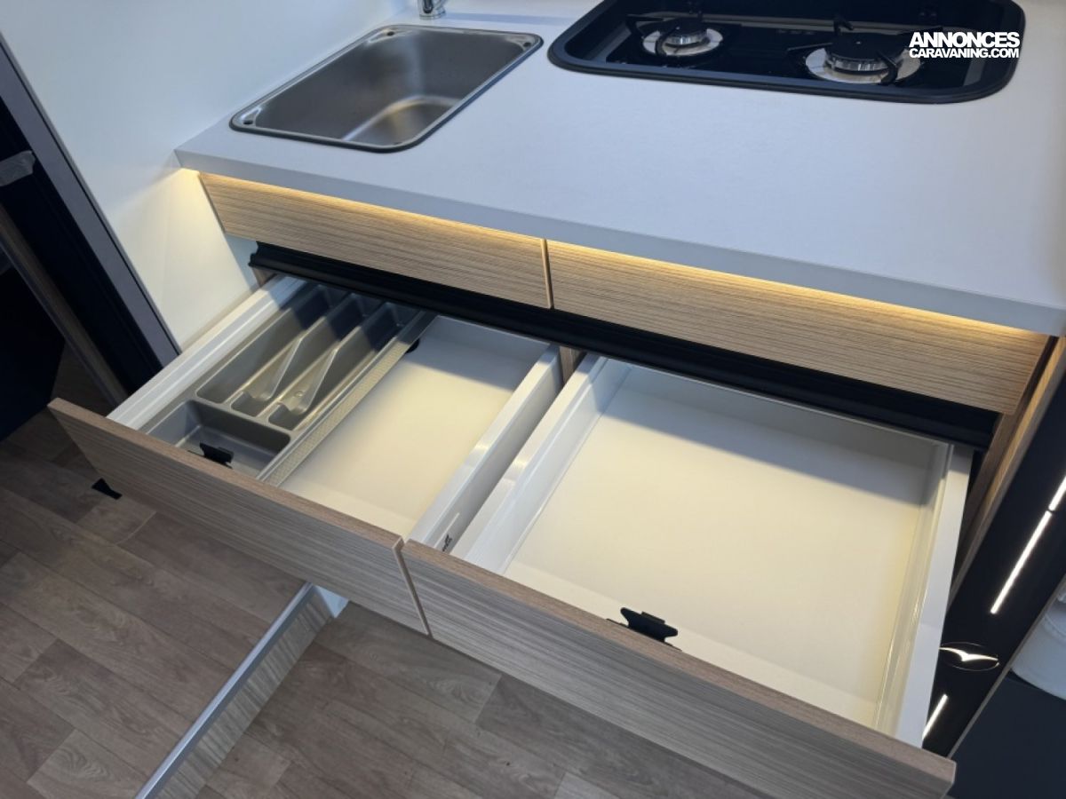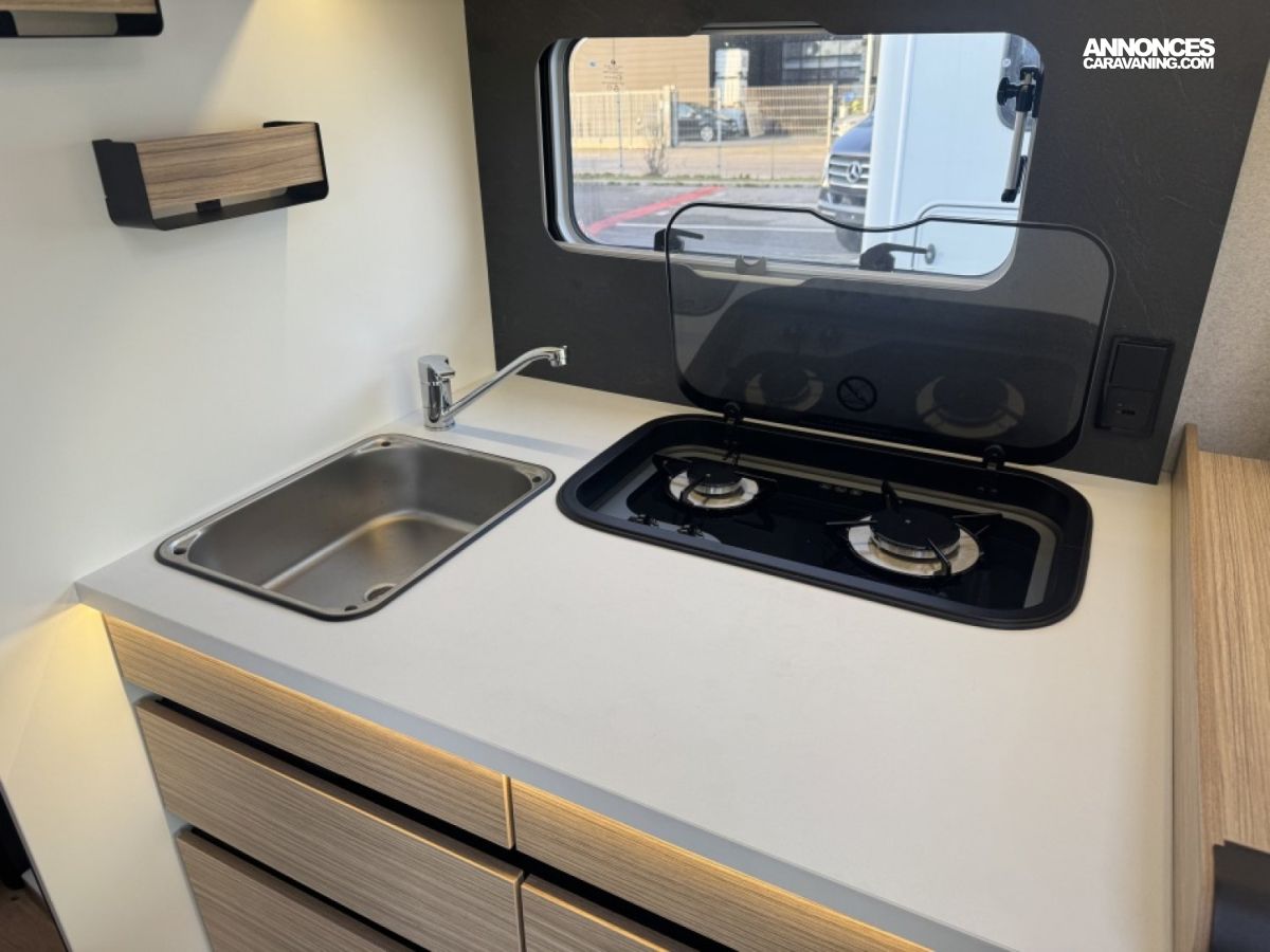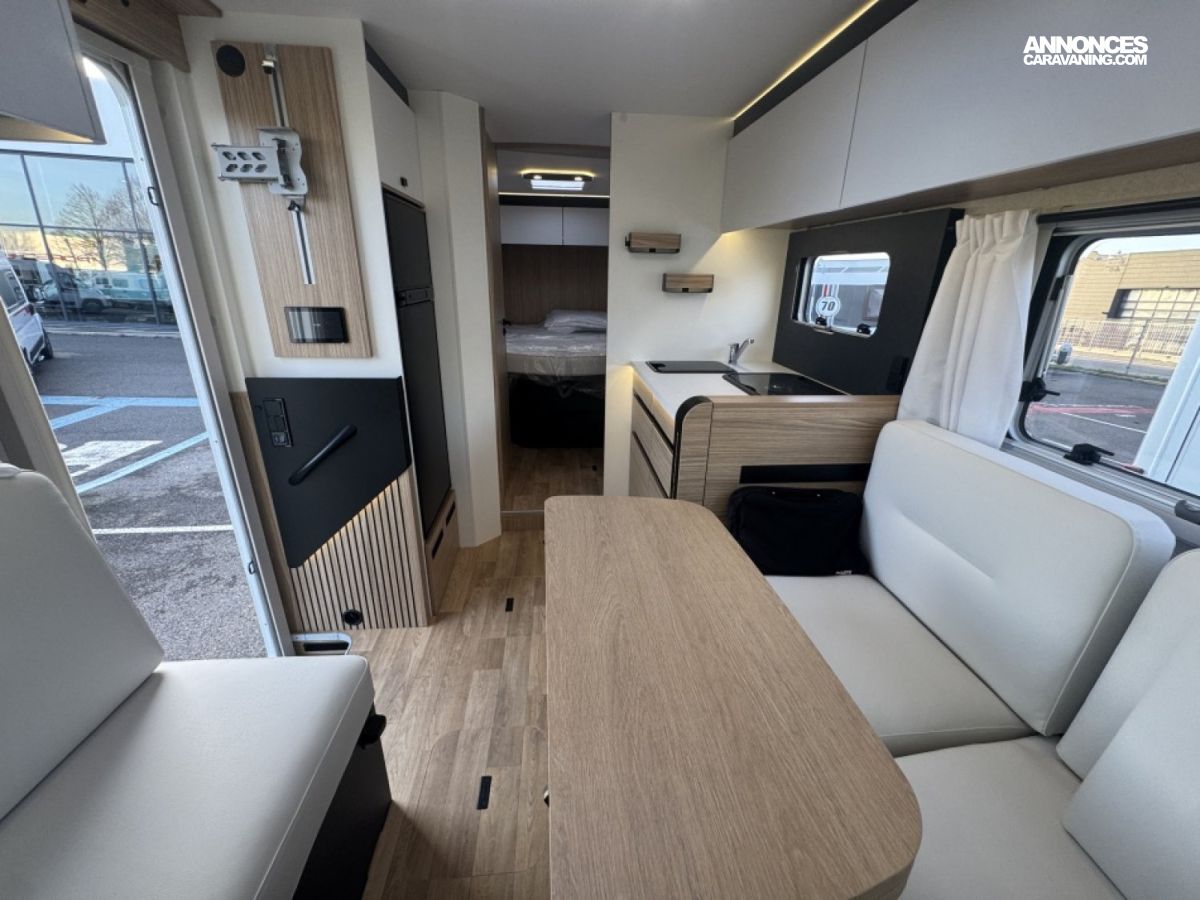Sa finition Evidence regroupe des équipements premium : caméra de recul, Apple CarPlay, panneau solaire, store extérieur, et un chauffage performant pour des voyages toutes saisons.