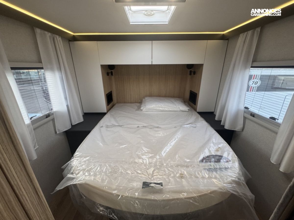 Avec ses 4 couchages, son lit central grand confort, son lit pavillon électrique et son salon face-à-face convivial, ce modèle intégral de 7,49 m combine espace, luminosité et praticité.