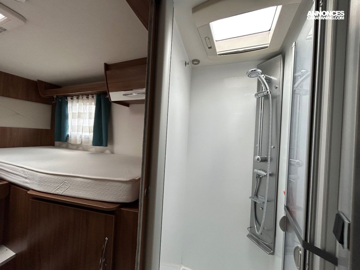 Ce véhicule vous offre , à l'arrière deux lits jumeaux sur soute , une douche et wc séparé , belle cuisine en L et grand réfrigérateur 170 l , à l'avant un beau et grand salon pour finir avec son lit escamotable 2 places au-dessous la partie conductrice .