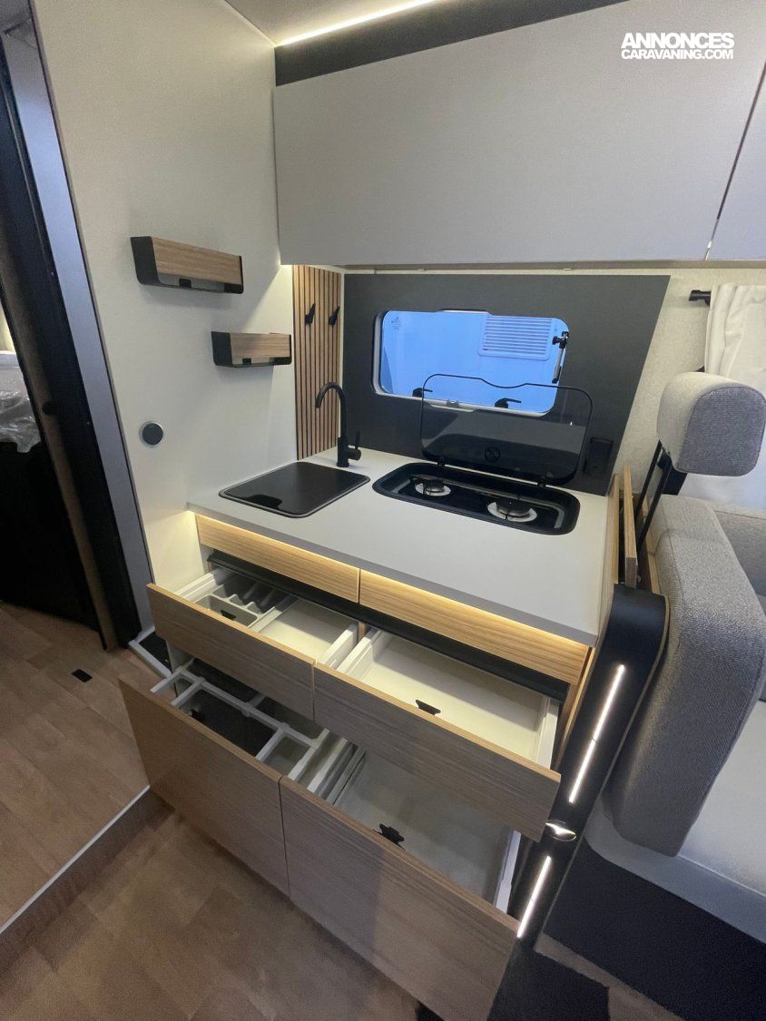 • Éclairage, rails d’arrimage et prise 230 V en soute.