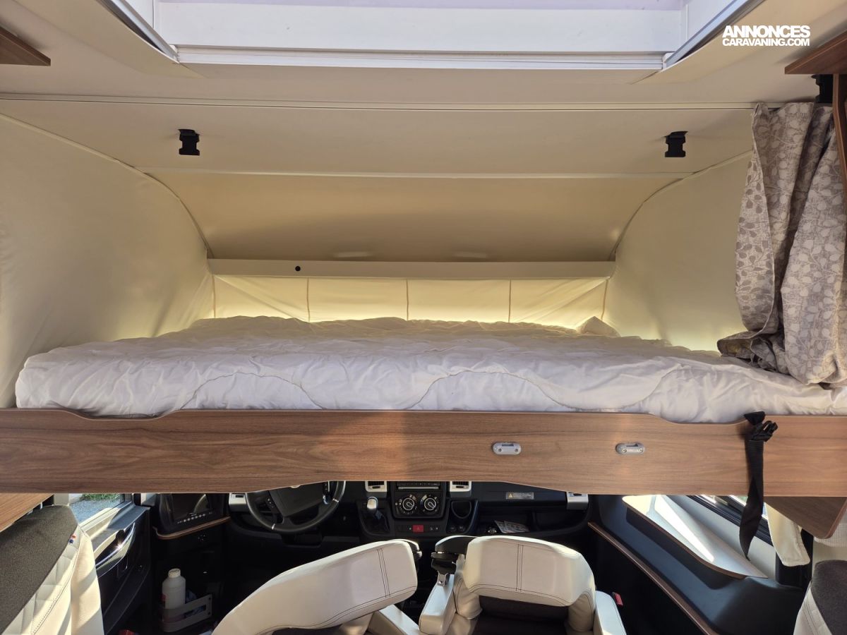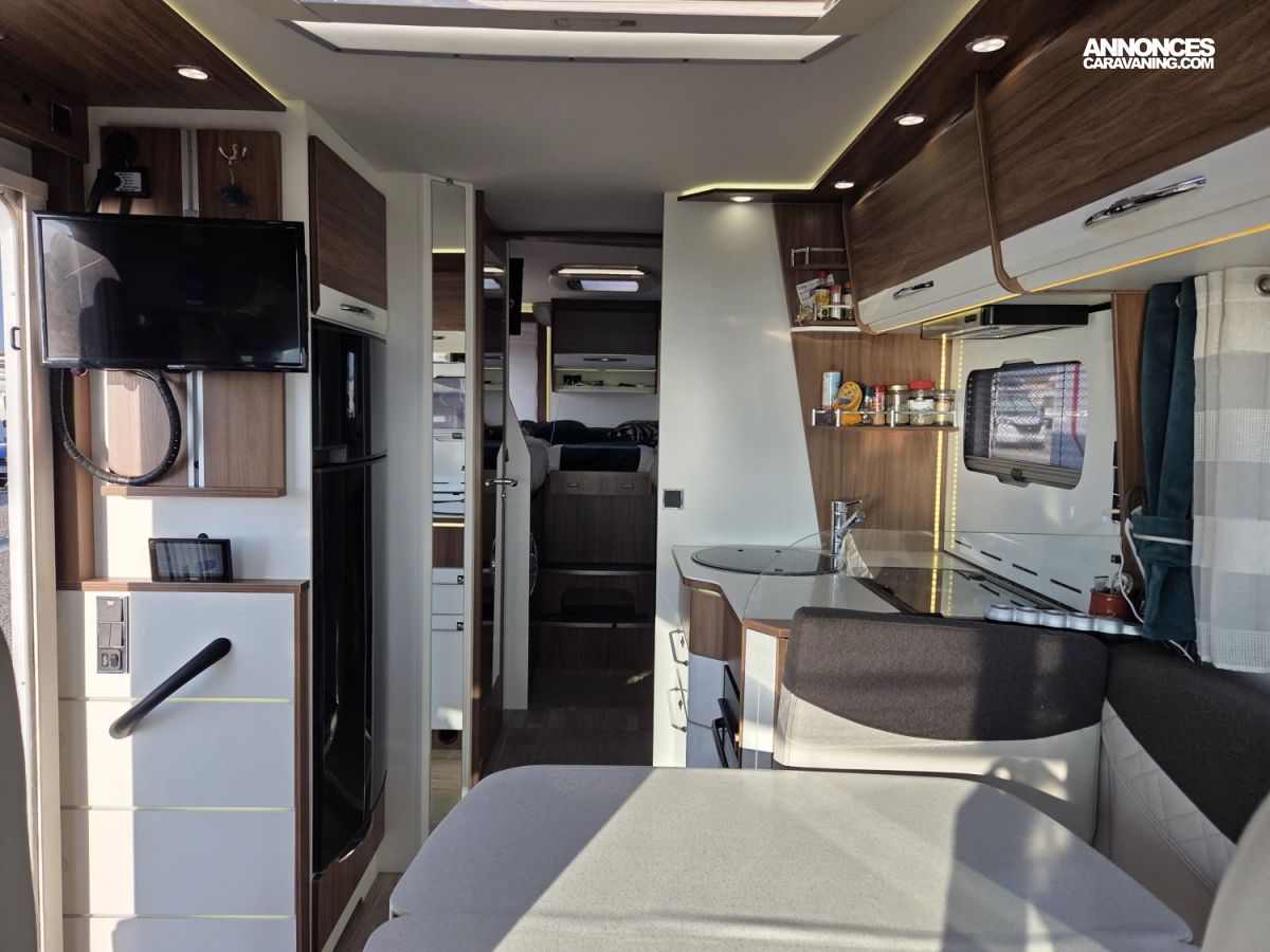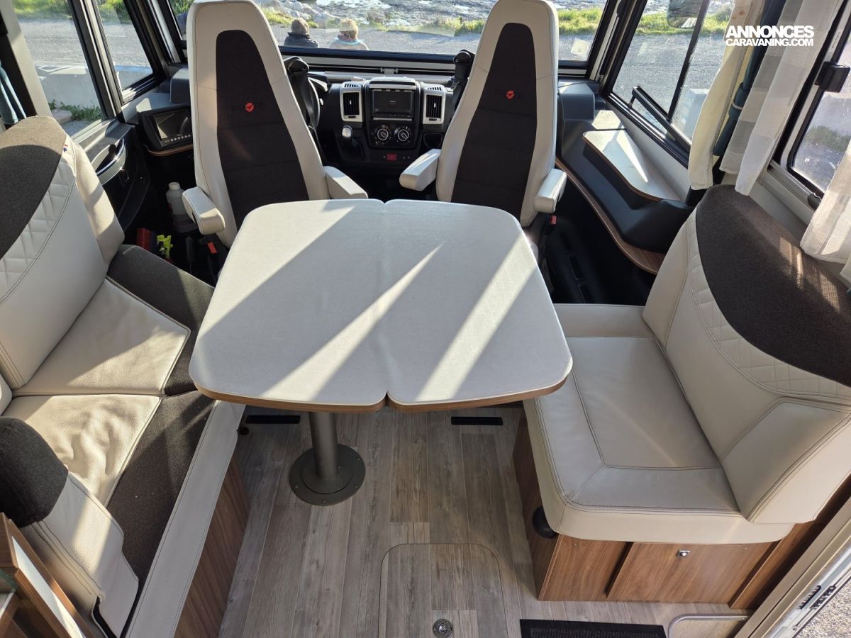 CHAUFFAGE CENTRAL ALDE, CHAUFFAGE COMBI HYBRIDE, REFRIGERATEUR/CONGELATEUR, STORE EXTERIEUR 5M, GAZINIERE 2 FEUX, FENETRE SDB, SELLERIE CUIR, DOUCHETTE DANS SOUTE, DOUCHE ET WC SEPARES, ECLAIRAGE LED, FOUR A GAZ, HOTTE ASPIRANTE, MOQUETTE CABINE, MOQUETTE CELLULE, MOUSTIQUAIRE DE PORTE CELLULE, PORTE VELO, REFRIGERATEUR 150L, REFRIGERATEUR TRI MIX, STORES PLISSES DE CABINE, CHAUFFAGE GAZ TRUMATIC, SIEGE AGUTI, DOUBLE CLOISON DE SEPARATION, SALON FACE A FACE, RESERVOIR EAUX USEES HORS GEL, LANTERNEAU PANORAMIQUE, ECHANGEUR THERMIQUE