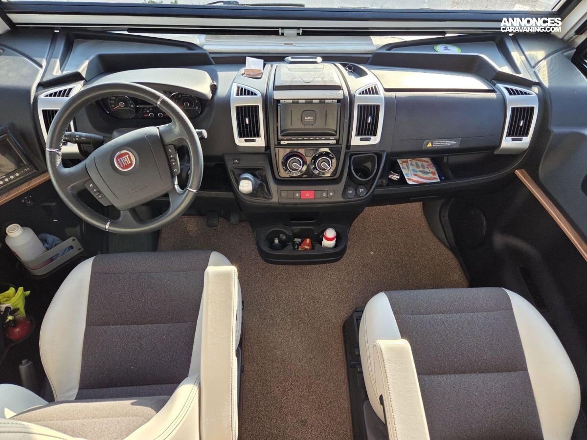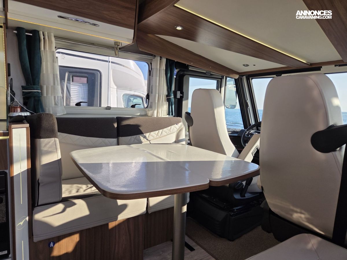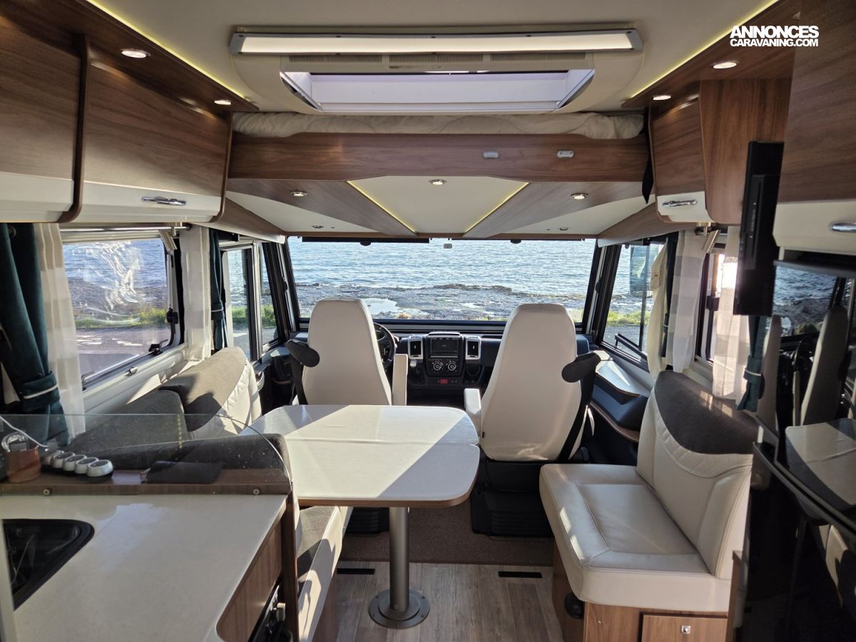 Le Pilote G741 FGJ Emotion est un intégral haut de gamme reposant sur un châssis AL‑KO robuste, basé sur un moteur Fiat 2,3 L 180 ch avec boîte automatique, offrant une conduite souple, puissante et confortable, d’autant plus appréciable avec son faible kilométrage. À l’intérieur, ce camping‑car dispose d’un salon à face convivial, parfait pour les repas ou les moments en famille, ainsi que d’un lit pavillon en complément des lits jumeaux, ce qui offre une capacité de couchage supplémentaire et modulable selon les besoins. Il est également équipé de deux télévisions 24 pouces pour le divertissement, ainsi que d’une installation énergétique performante comprenant deux panneaux solaires de 120 W et une batterie lithium de 280 Ah, garantissant une grande autonomie en voyage. Le confort thermique est assuré par un système complet combinant chauffage Alde, chauffage Truma et échangeur thermique pour une diffusion homogène et efficace de la chaleur en toutes saisons. L’ensemble est en excellent état, très bien entretenu et prêt à prendre la route sans frais à prévoir , un véhicule idéal pour des voyages confortables et sereins.